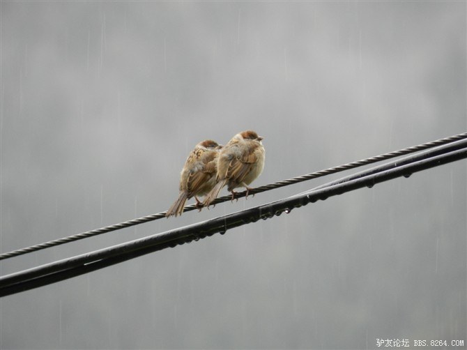 停在电线上的两只小鸟,圆乎乎的,好可爱阿~~