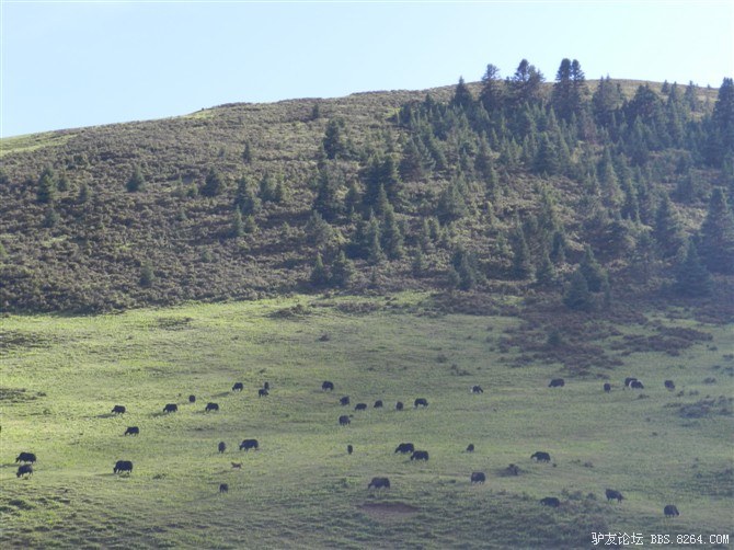 第一次看到这么多牦牛,大家都是异口同声的“哇~~~~~~~~~”好稀罕。O(∩_∩)O~ <br> 好害怕它们会冲过来。