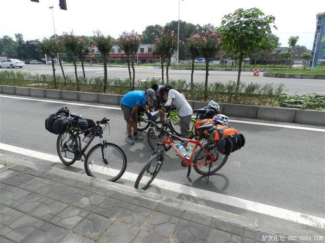 从成都到雅安,156km的平路,对于骑惯了山路的我们,很不习惯。PP痛。今天爆胎了,压到了玻璃渣子。