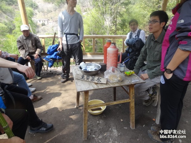 经过40分钟的长途跋涉,我们大达第一个歇脚点,这里有免费的茶水提供给大家,是一位盲人大伯打理的,当我们知道他是以为盲人时,我们对他,除了敬仰,还是敬仰,敬仰他的无私精神,美女主持给大伯了一张“红皮”,副领队则给他一包利群香烟