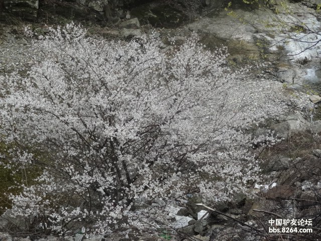 偶然,在拐角的溪流边,发现了一株开得很茂盛的樱花树
