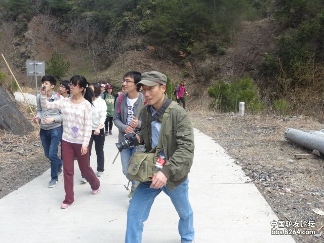 正式切入主题,徽杭古道是我一直都很想走的徒步穿越路线之一(原因有俩:1是在8264论坛里经常能看到驴友发布的帖子,2是因为这条古道和我们那里的”徽开古道“名字很相近。)前不久在QQ上意外的看到杭州”在路上“群主——形行摄色发的徒步帖子,我当时想都没有想就报名参加了。3月16日,我们整装出发,早上7.30分车子从第一集合地吴山广场出发,8.10发到达第二集合地汽车西站,车子载着此次活动的38名队员朝着目的地驶去,一路上,大家都简单的介绍了自己,认识大家,欢歌笑语,首先我来介绍下我们的领队”形行摄色“(戴眼镜的那位就是)