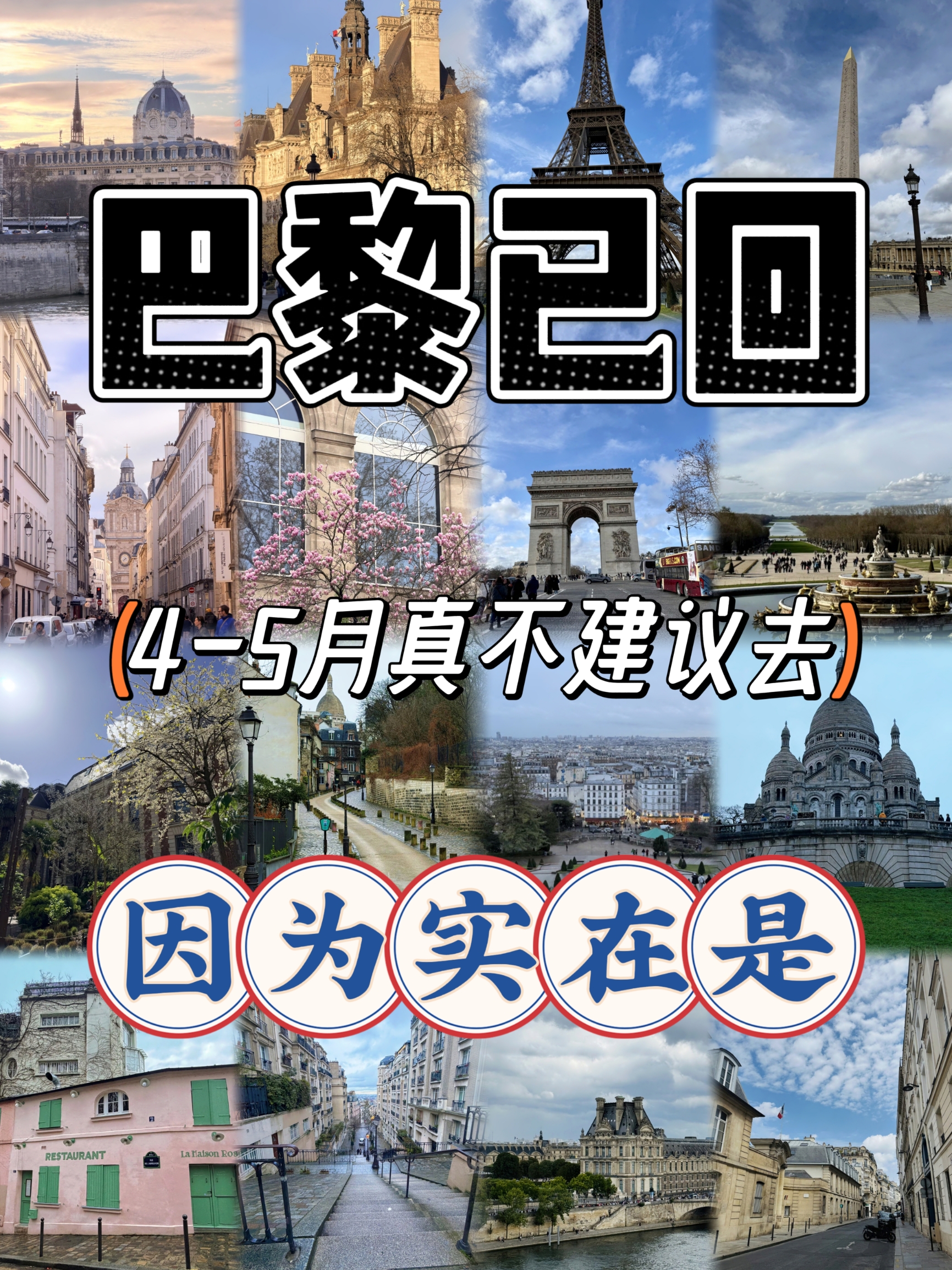 巴黎真的超美,但4-5月真的是“地狱难度”。天气、客流、坑点全是硬伤,不如听我的,等6月再冲,到时候给你们出超全的巴黎浪漫攻略!