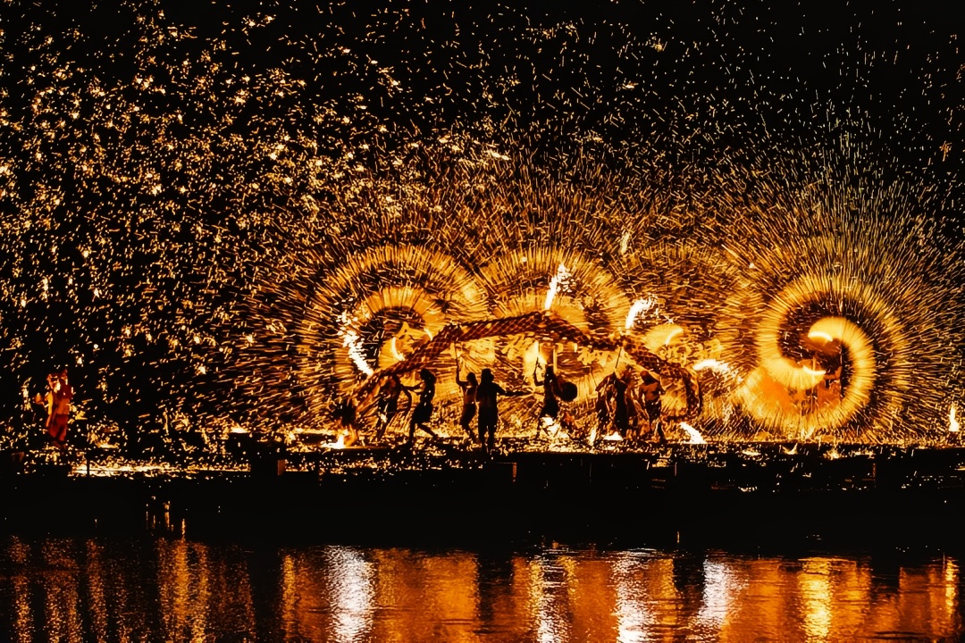保亭“三月三”水上演艺开启2026年4月17日至4月19日每晚21:00—21:45,保亭七仙奇梦不夜城七仙河畔呈现大型水上演艺《七仙沐春·水上映画》。演出以七仙文化为内核,融合水幕投影、灯光艺术与非遗技艺,打造沉浸式黎苗风情夜游体验。40米巨幅水幕横跨河面,配合高空威亚花船、仿生蝴蝶翩跹起舞、天女散花与飞马巡游;“金瀑银河”冷焰火瀑布绵延200米倾泻而下,“火树银花”环节再现千年打铁花绝技,风火轮腾跃翻飞,震撼力十足。游客可沿河岸观演,在光影水色间感受春日节庆的热烈与浪漫,聆听黎族山歌对唱、细品传统器乐悠扬。现场免费开放,适合家庭出游、情侣打卡与文化深度体验。