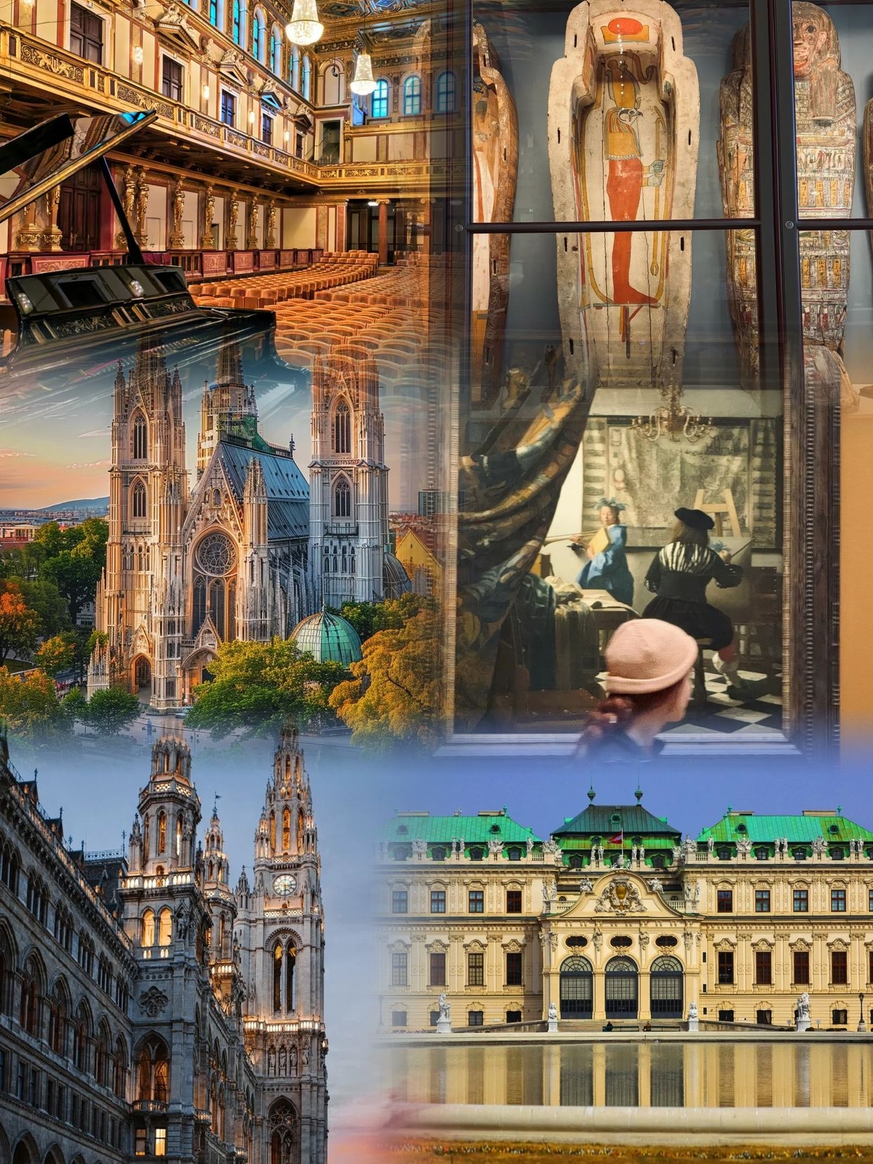 第二天:上午参观维也纳艺术史博物馆,欣赏珍贵的艺术品。下午前往美景宫,参观奥地利美景宫美术馆,领略世界最重要的美术品收藏之一。晚上在维也纳国家歌剧院观看一场演出,感受世界顶级歌剧院的魅力。