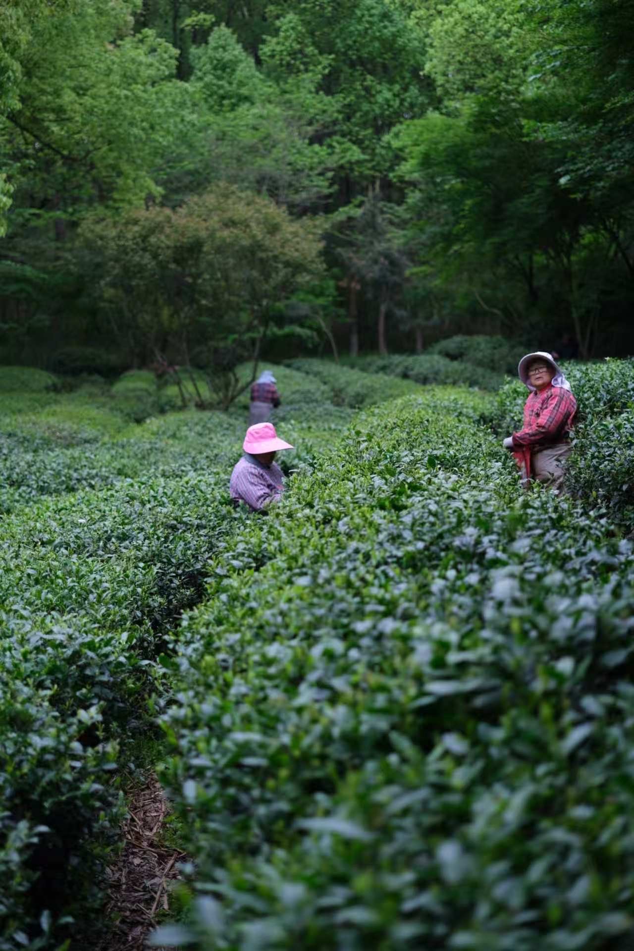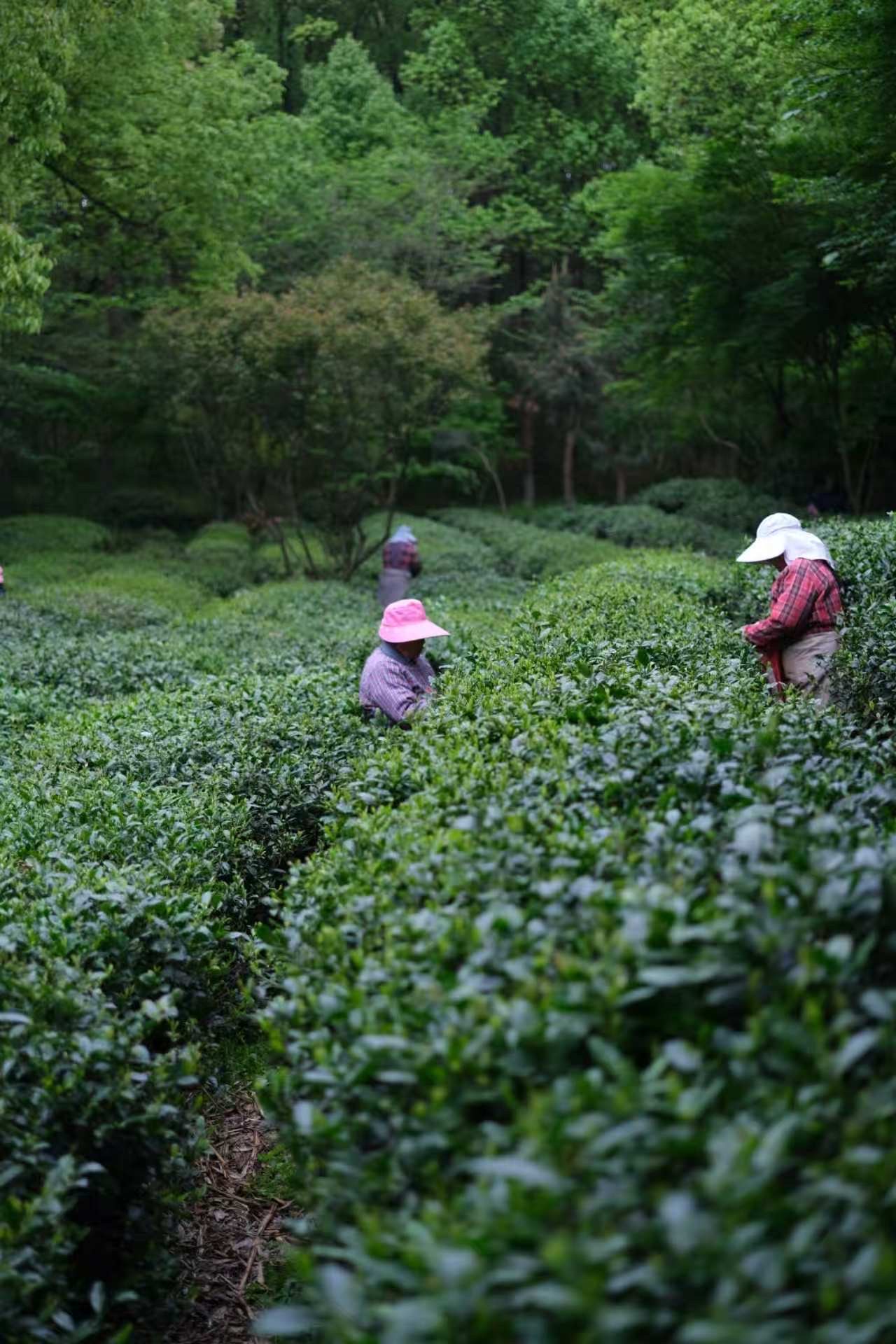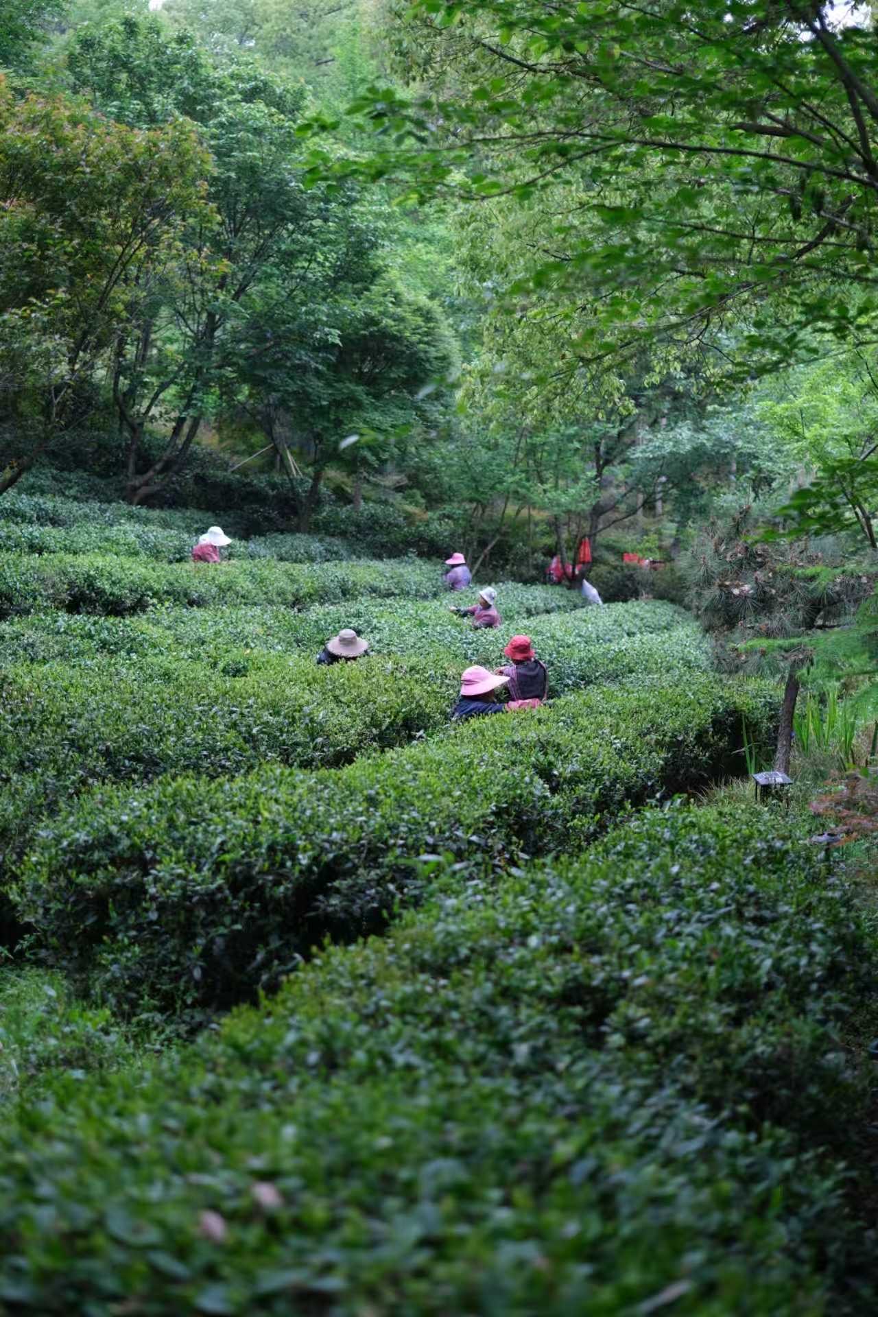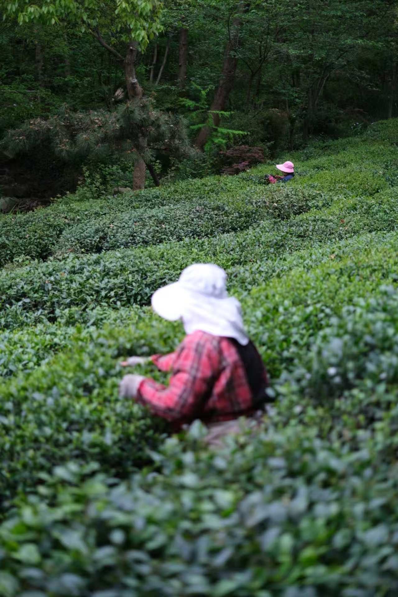 春山采茶忙 采摘标准:多为一芽一叶或一芽二叶 提采(轻捏上提),不掐、不扯,保芽形完整。 春分—清明—谷雨,越早越矜贵。 今天春山有九位采茶工,到下午看一下能采多少斤青叶[转圈] #春山在望度假酒店 #春山茶