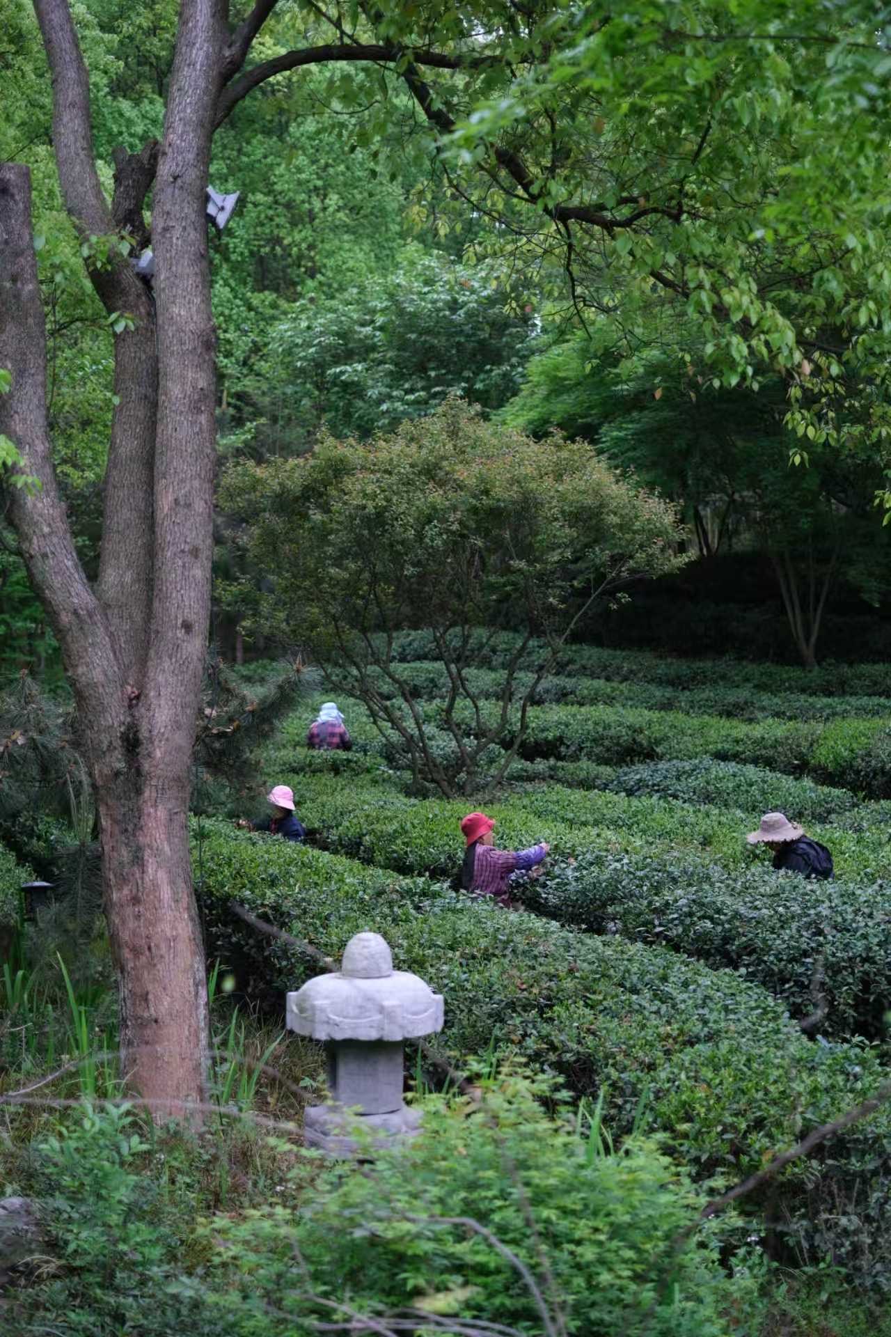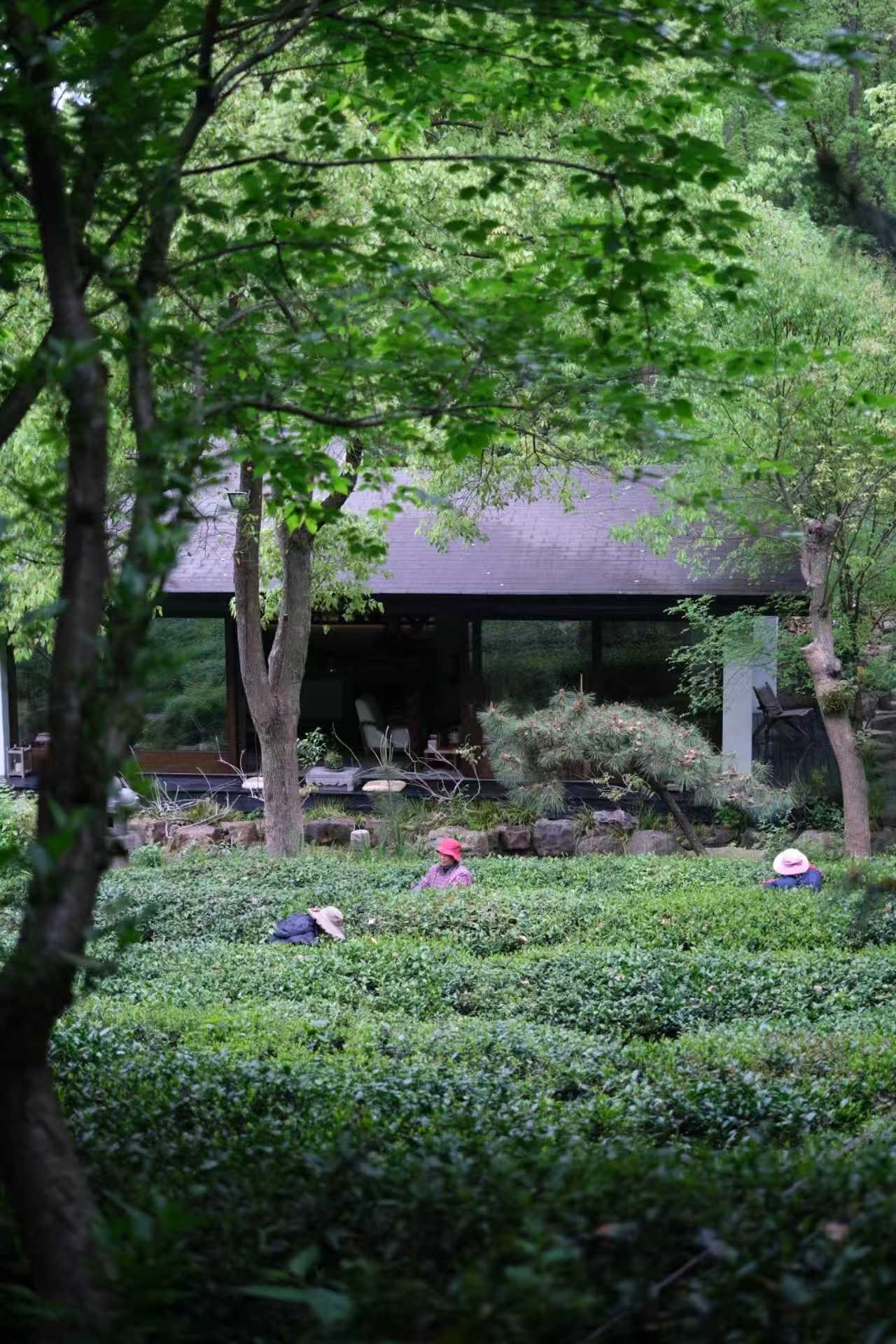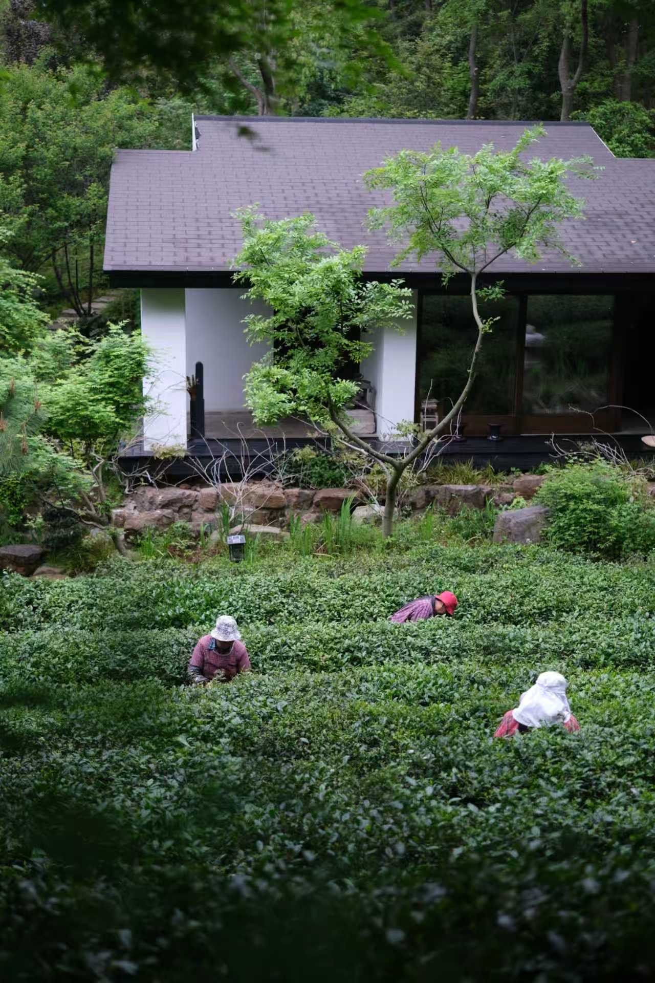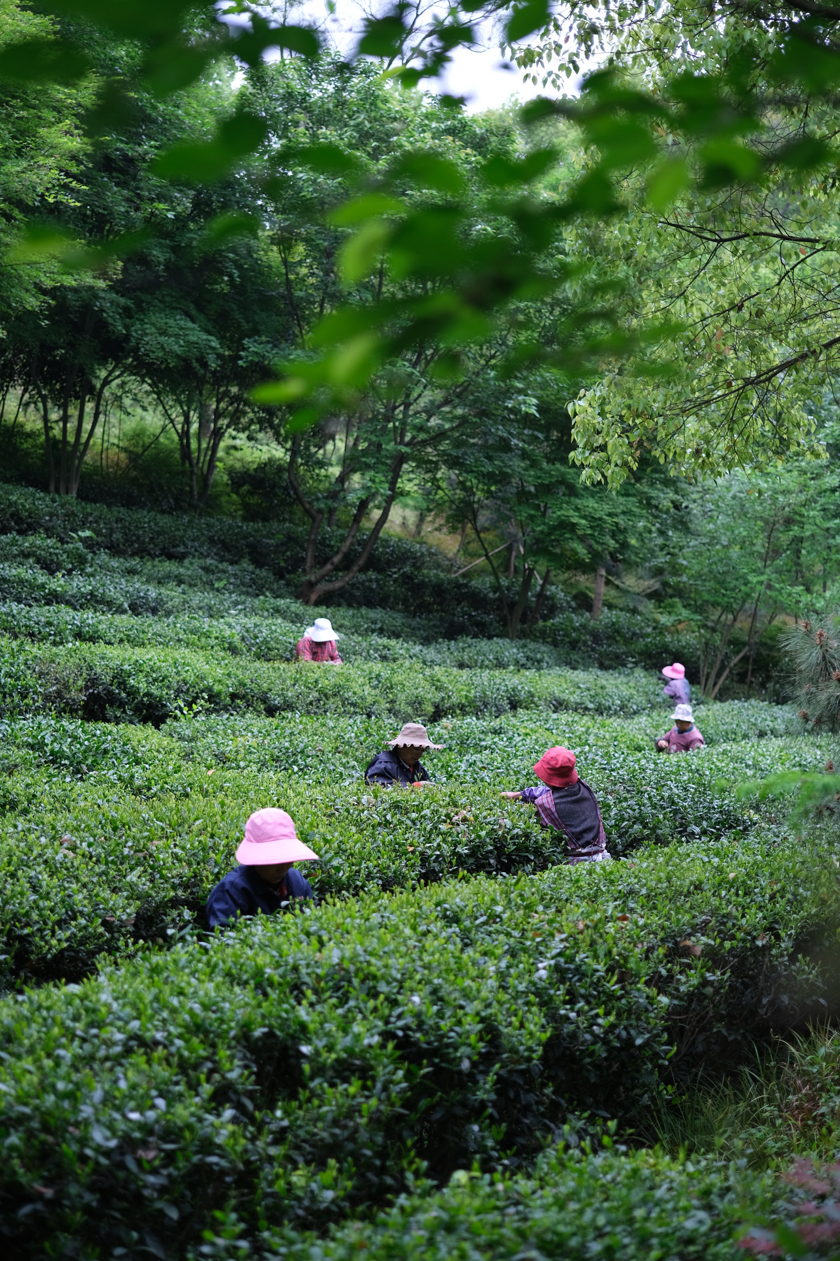 春山采茶忙 采摘标准:多为一芽一叶或一芽二叶 提采(轻捏上提),不掐、不扯,保芽形完整。 春分—清明—谷雨,越早越矜贵。 今天春山有九位采茶工,到下午看一下能采多少斤青叶[转圈] #春山在望度假酒店 #春山茶