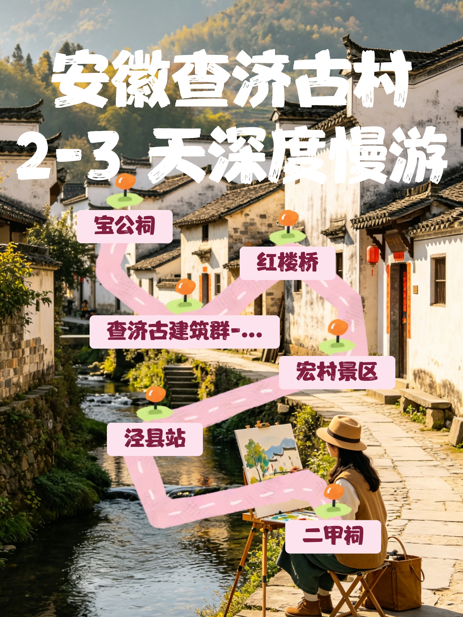 - 舒适型(便利):查济迎宾馆、广源楼,120-200元/晚,近村口/溪边,交通方便