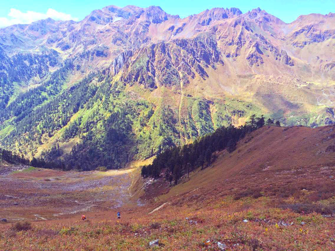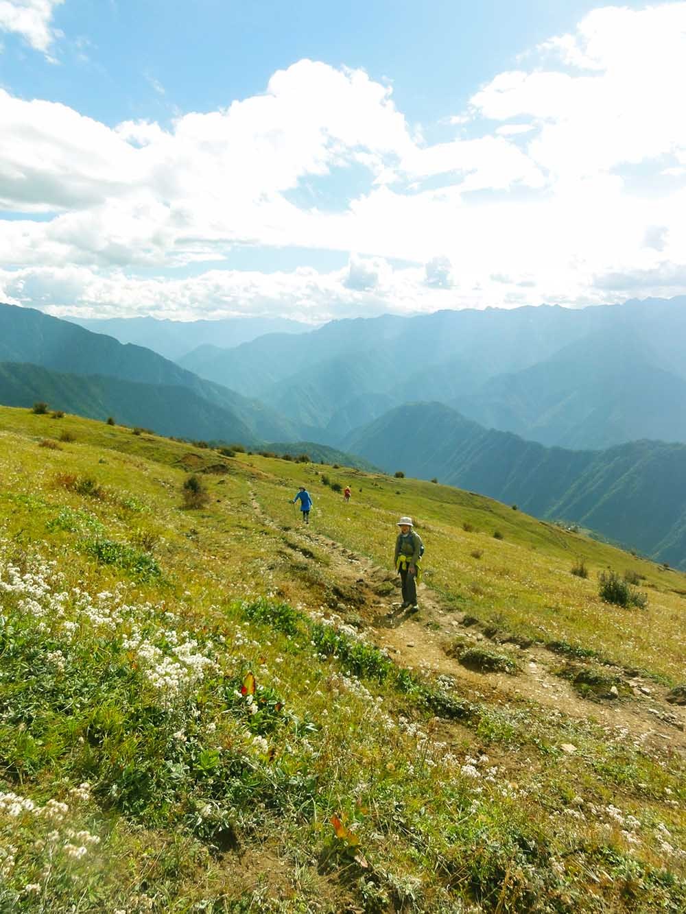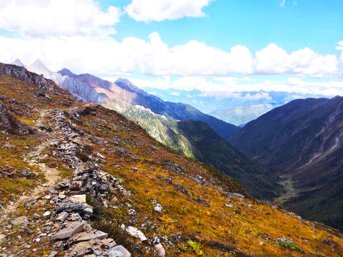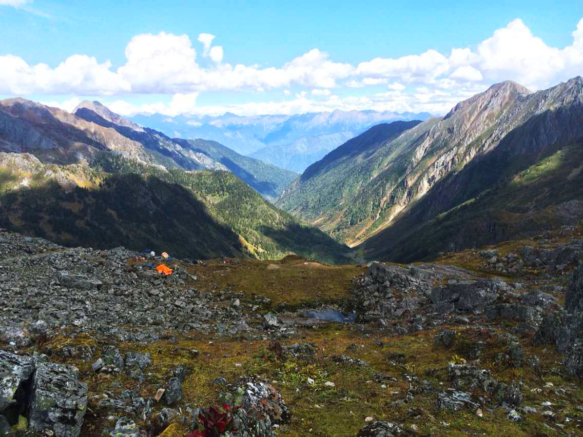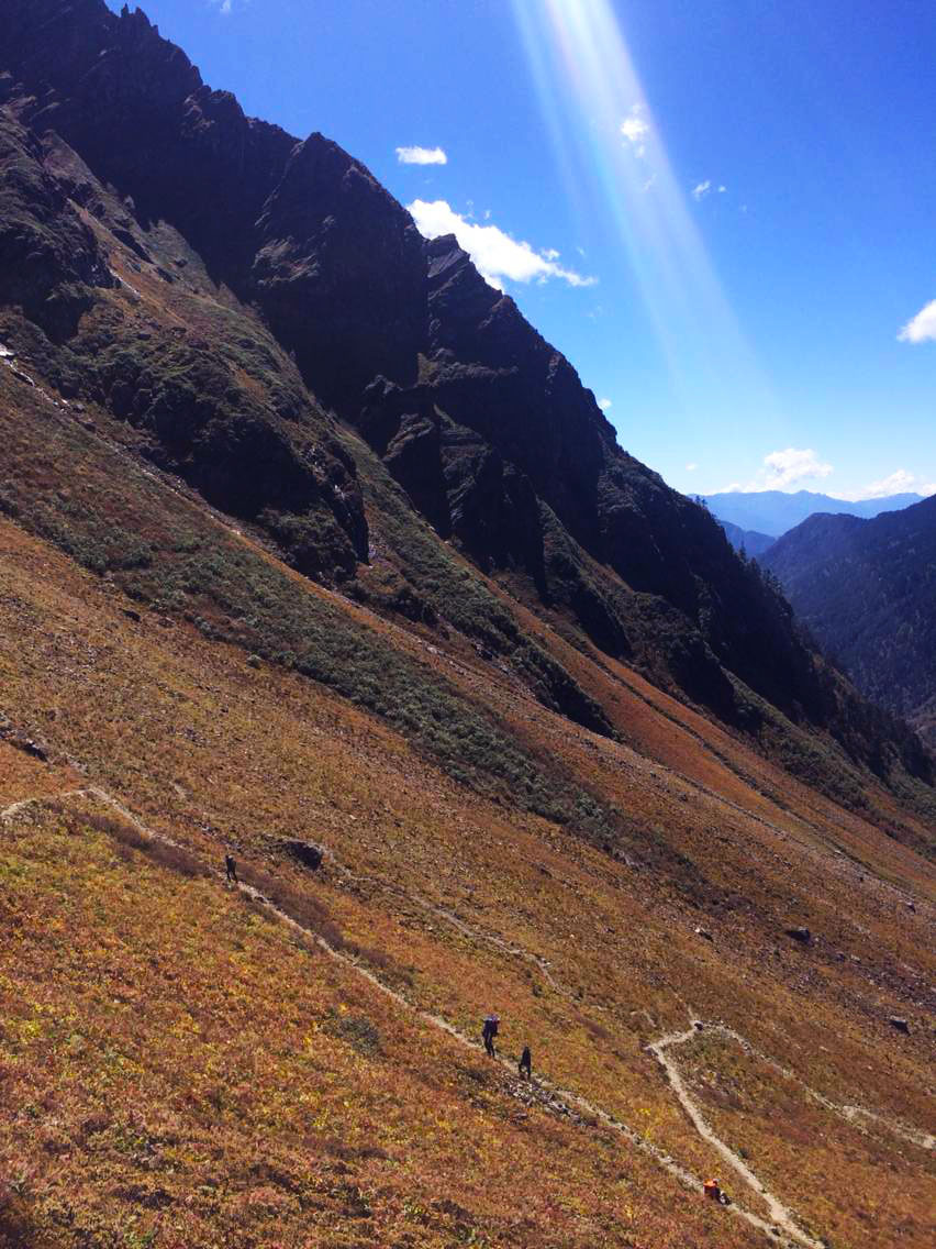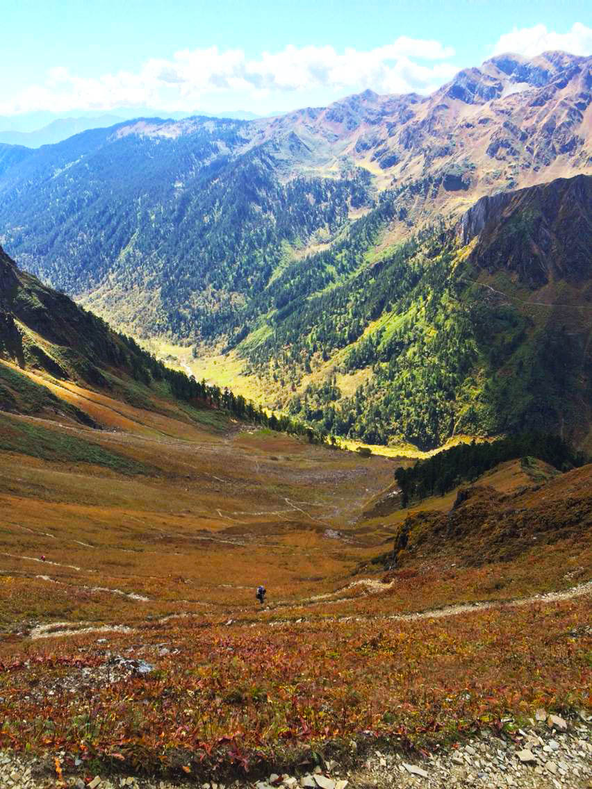 总的说来,除了第一天的11个钟头比较辛苦,这条线路从第二天开始难度就一直下降,过了今天这个最高海拔4200米的垭口,后面便是一路的下坡。