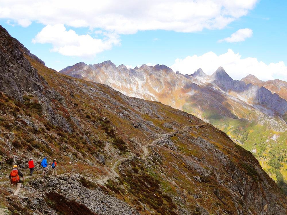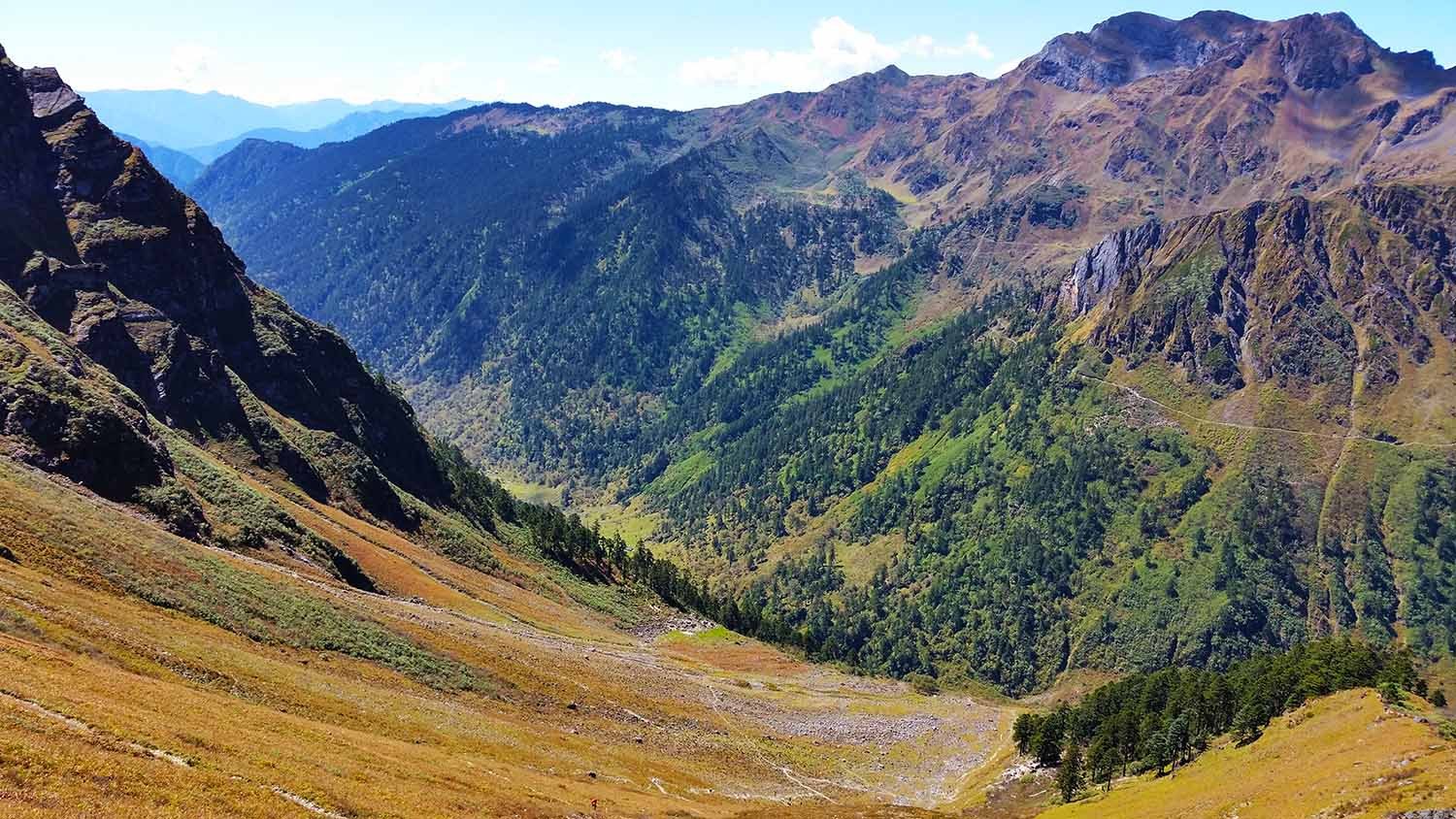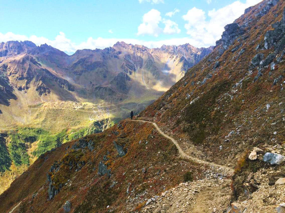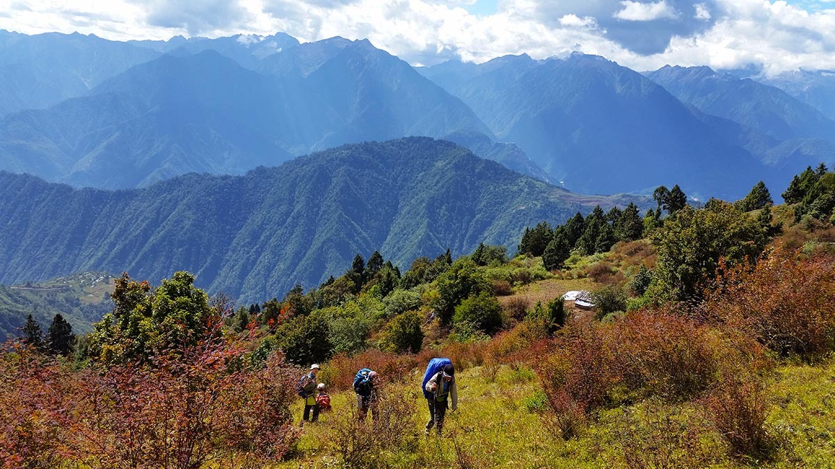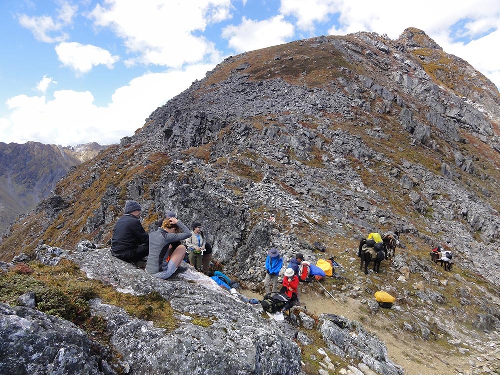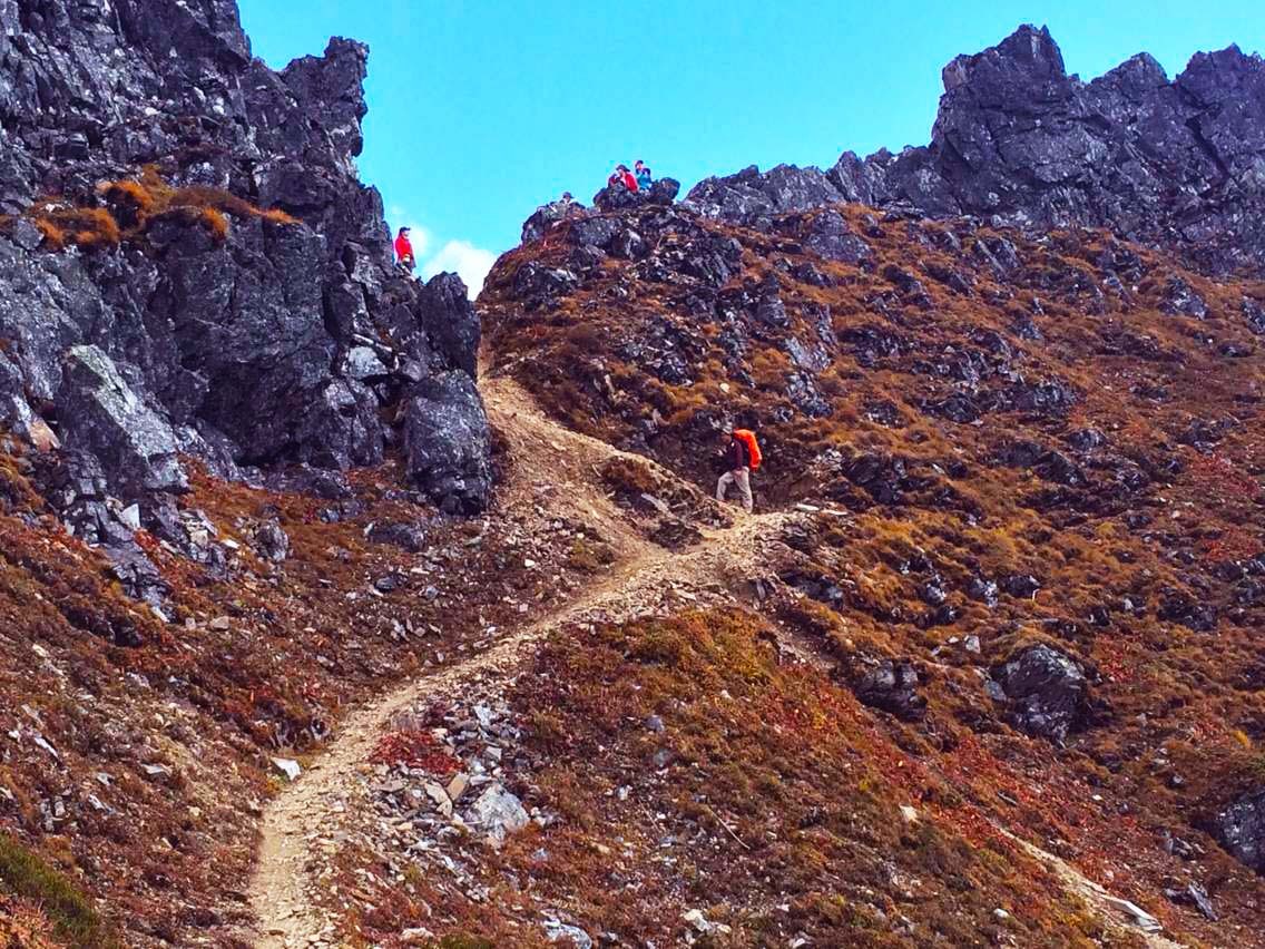 总的说来,除了第一天的11个钟头比较辛苦,这条线路从第二天开始难度就一直下降,过了今天这个最高海拔4200米的垭口,后面便是一路的下坡。