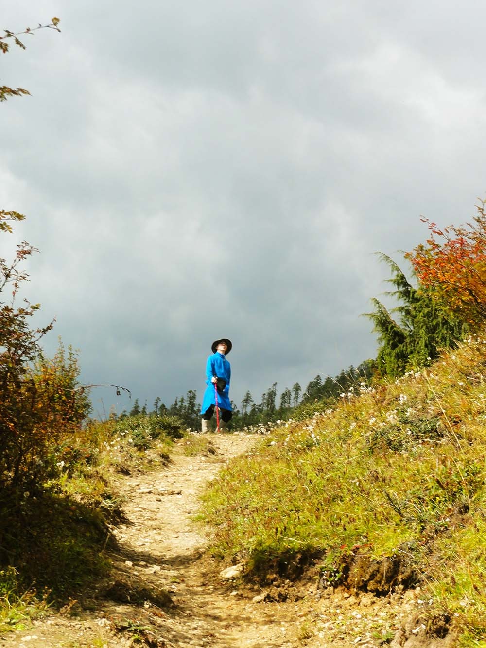 上升、上升、上升,这条路的路径还是非常明显的,就算偶尔有岔路,问一下老乡也就清楚了,我们总体是往东去,翻越高山到茨中村,所以一路看着指南针也可以自己辨别方向。