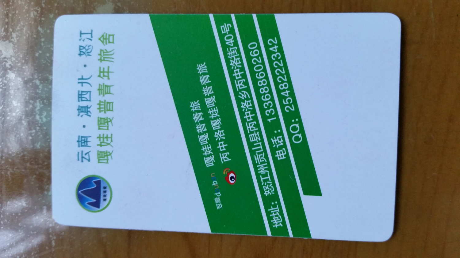 (嘎娃嘎普青旅的名片,想去丙中洛的朋友可以联系老板,老板人很好,自己也玩户外,房间很干净。)
