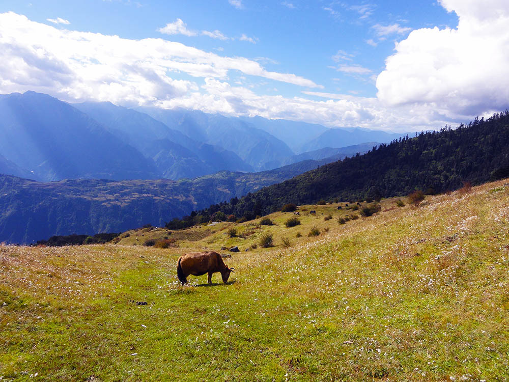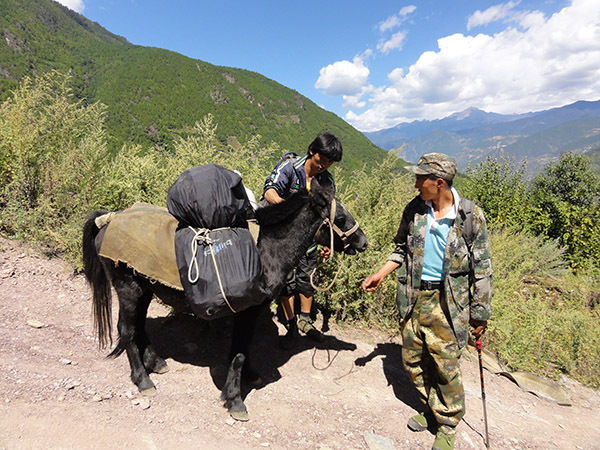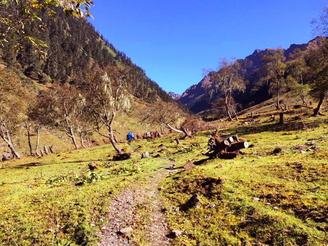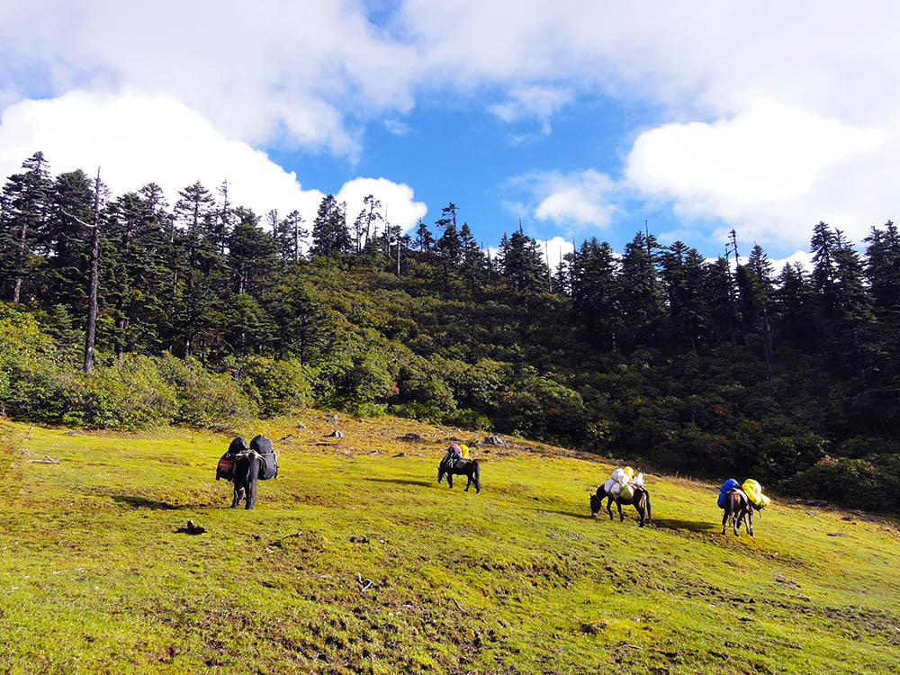 前一天徒步的路程有点远过了头,整整11个小时,上升海拔也超出了预期。领队后来对我们说,如果不是因为马帮,他会安排我们在沿途的牧场扎营,这样的行程才比较合理。