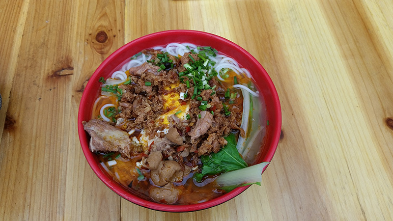 (云南这边的早饭都是这么汤汤水水的,刚到那边的时候,我特别想问:老乡,有干的东西吗?但是住久了也就习惯了,尤其是那里干燥,嘴唇起皮,早起还真想喝点儿热汤。)