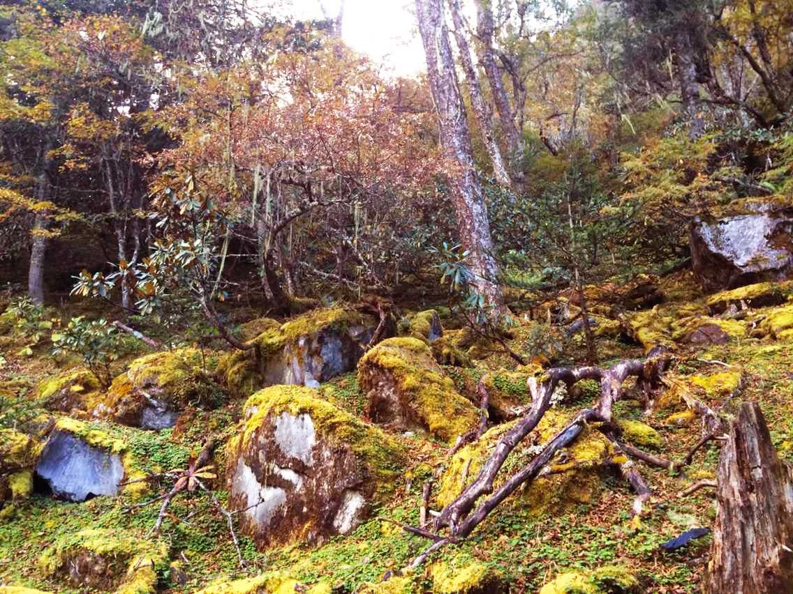 在到达第一个牧场之前,我几乎没拍几张照片,一直在次生林中穿梭,风景一般,时时对照GPS,当海拔超过3000米后,开始有一点高原徒步的反应了,觉得走路偶尔会有点气喘,抬步更加困难,上坡比之前要慢了。