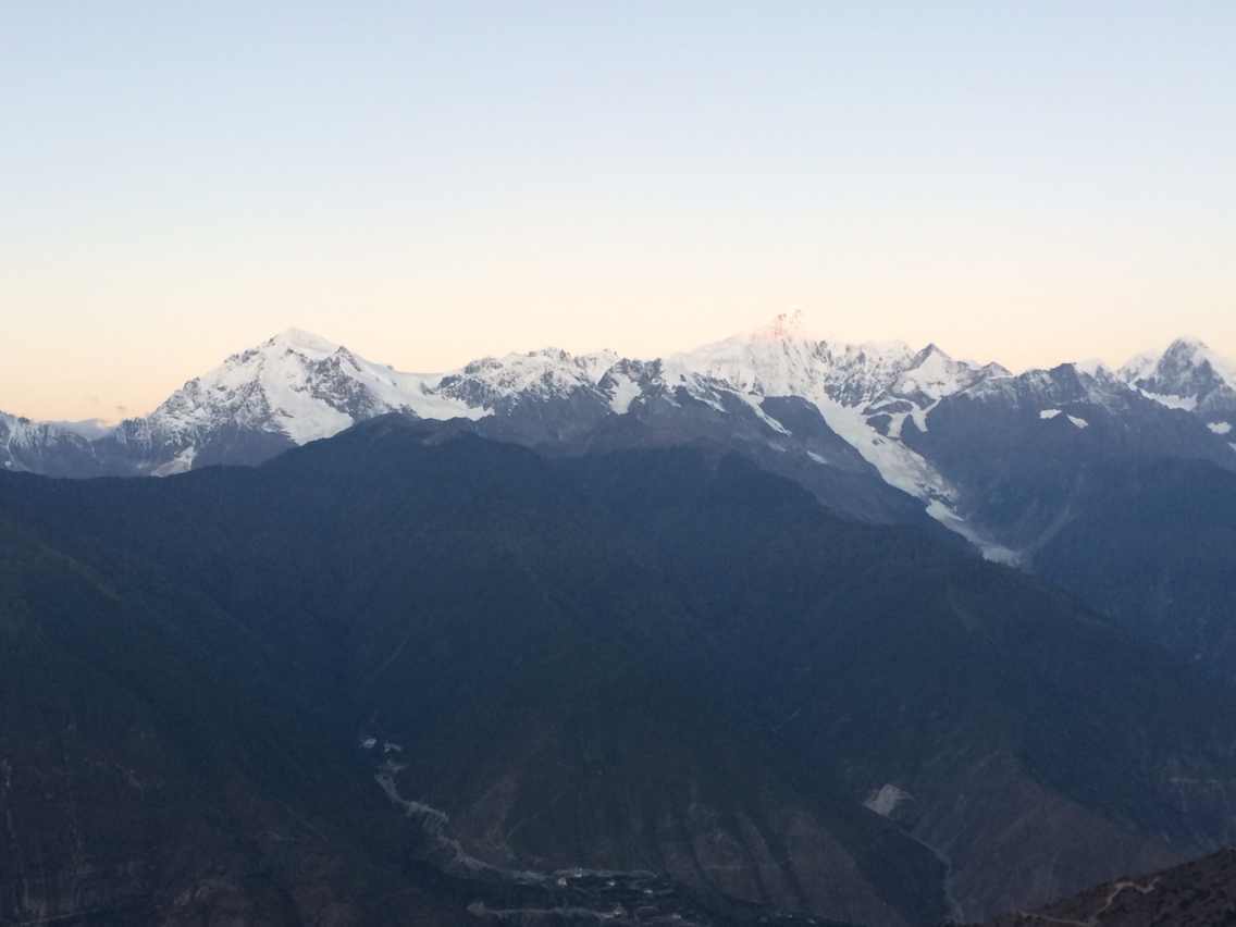 (虽然这个季节,山上没有雪,这景象还是令我无比震惊,默默地看了好久好久,想将这一幕牢牢铭记在心底。照片实在不足以表达其万分之一的美,只有身临其境才能体会那种震撼。)