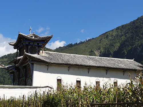赫赫有名的茨中教堂就在这里,还有葡萄酒。 <br> 可惜,为了赶去沙溪古镇和大理,我们既没有喝葡萄酒,也没有去看教堂,就匆匆跳上了一辆送草料的货车。 <br> 高原徒步结束,大家兵分两路,有两位去了香格里拉,幸运的看见了梅里雪山的全貌,这是后话。