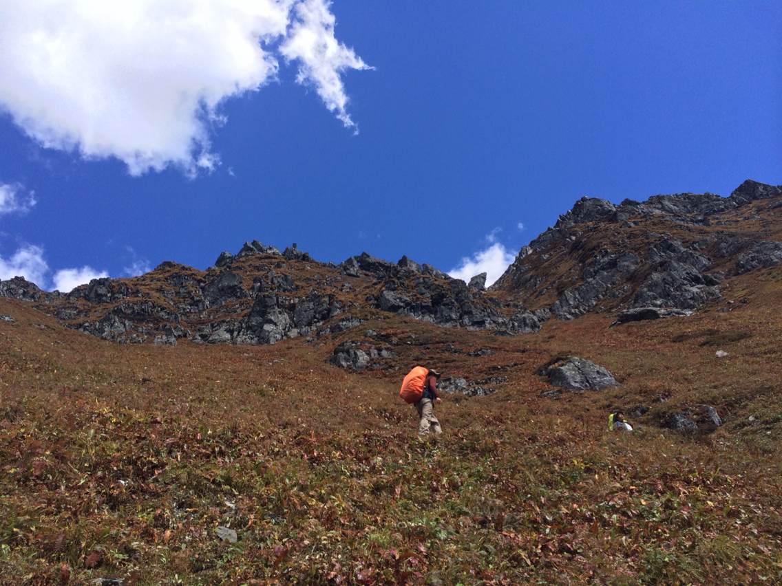 第五天:2014年10月3日(迪麻洛-白汉洛教堂-碧罗雪山垭口1-初卡牧场<br> 徒步11个小时)