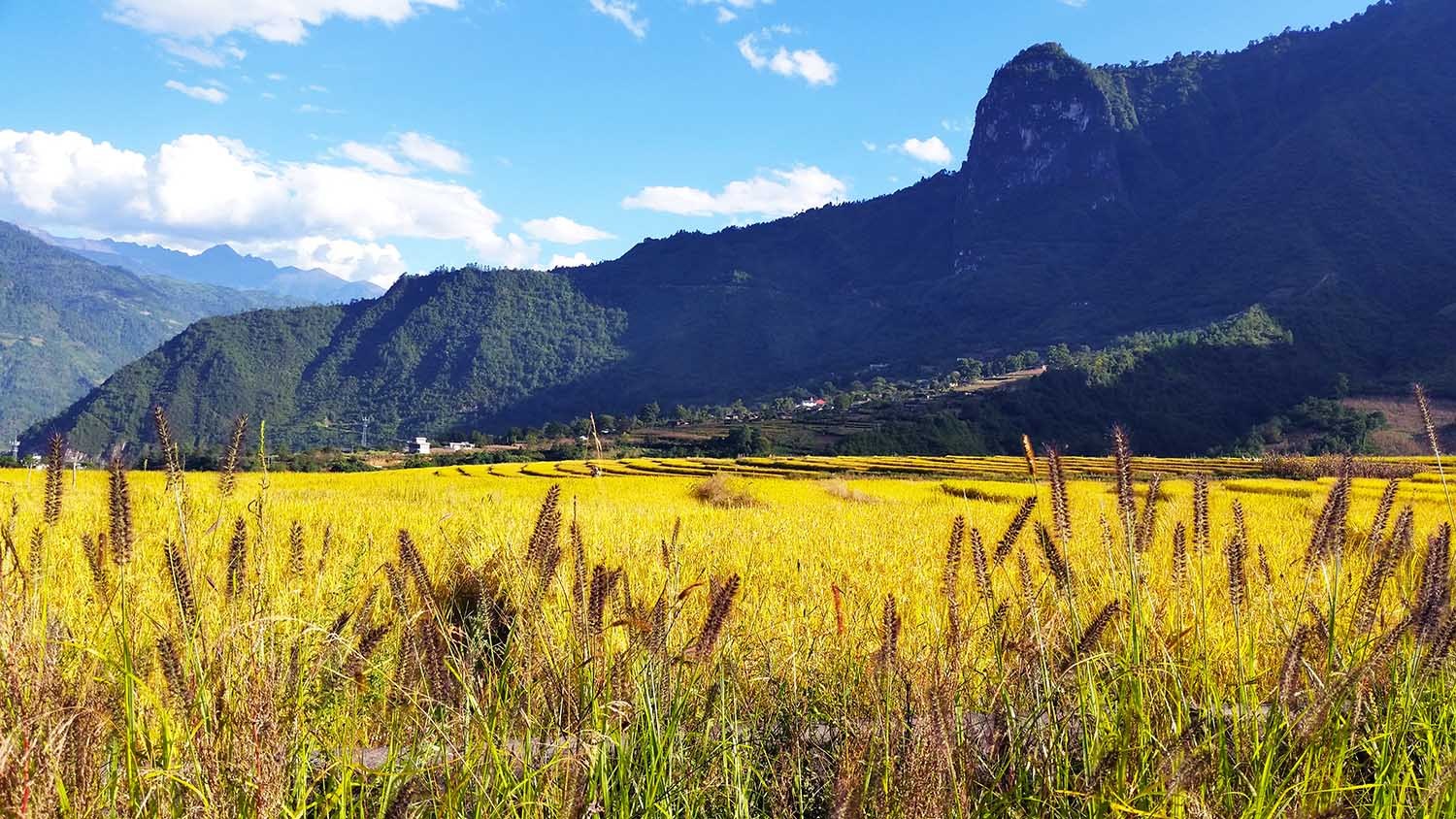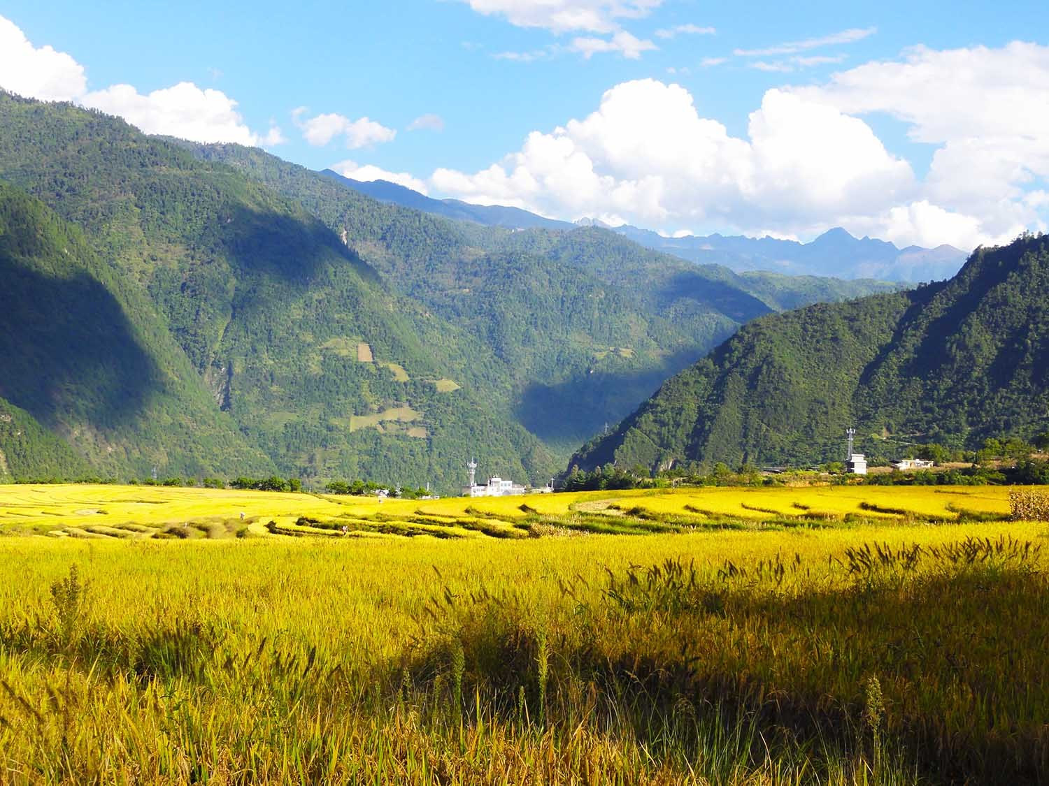 路过普化寺,在当地人的指点下,我们一路奔向那片金色的稻田,我对小玉说:倘若我就是当初书写香格里拉的第一人,我一定会称这里是一片黄金遍地的世外桃源!