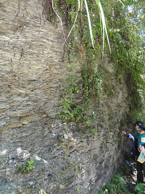 (怒江沿岸奇特的地理特征,如层积岩一般的地貌,然而却呈现垂直分布,不知是否是由于横断山脉地区,大陆板块互相挤压造成的?)