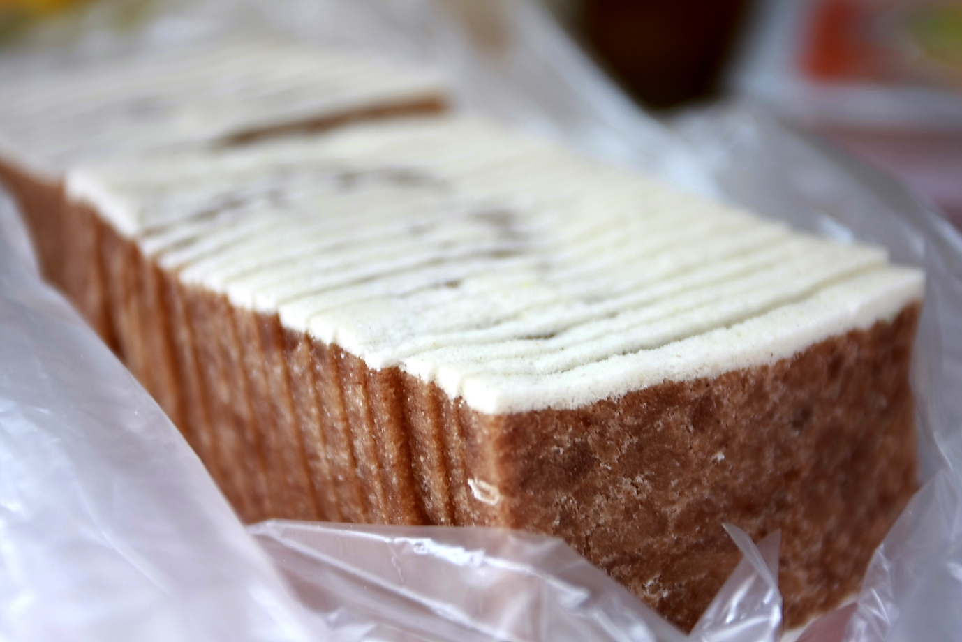 现今的芡实糕由芡实和糯米膨化粉精制而成,比原来八珍糕口感更细腻、有嚼劲。最受欢迎的是桂花芡实糕,带有一股桂花清香味,还有花粉蜂蜜芡实糕也很特别,软糯清甜,好吃不腻口。