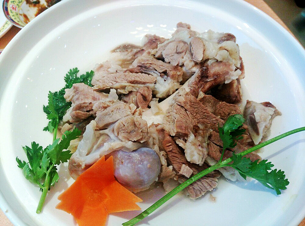 手把羊肉的意思,就是用手把着羊肉吃。把大块的羊肉放到锅里,不加任何调料煮熟,一手拿着有羊肉的羊骨,一手用刀剔下羊肉,蘸着佐料吃。手把肉是蒙古族招待客人的必备之菜。