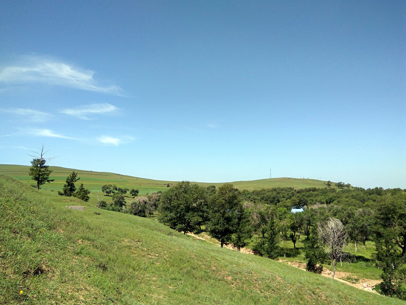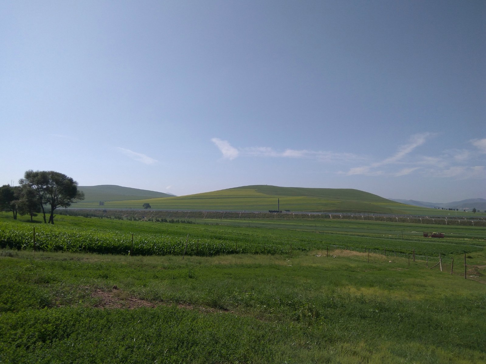早上拉开窗帘才发现昨晚误打误撞选的农家乐位置有多赞,对面隔着高速公路就是一大片起起伏伏的草甸子。墨绿,深绿,浅绿,鹅黄,几种颜色渐次连接,连成了windows开机画面。