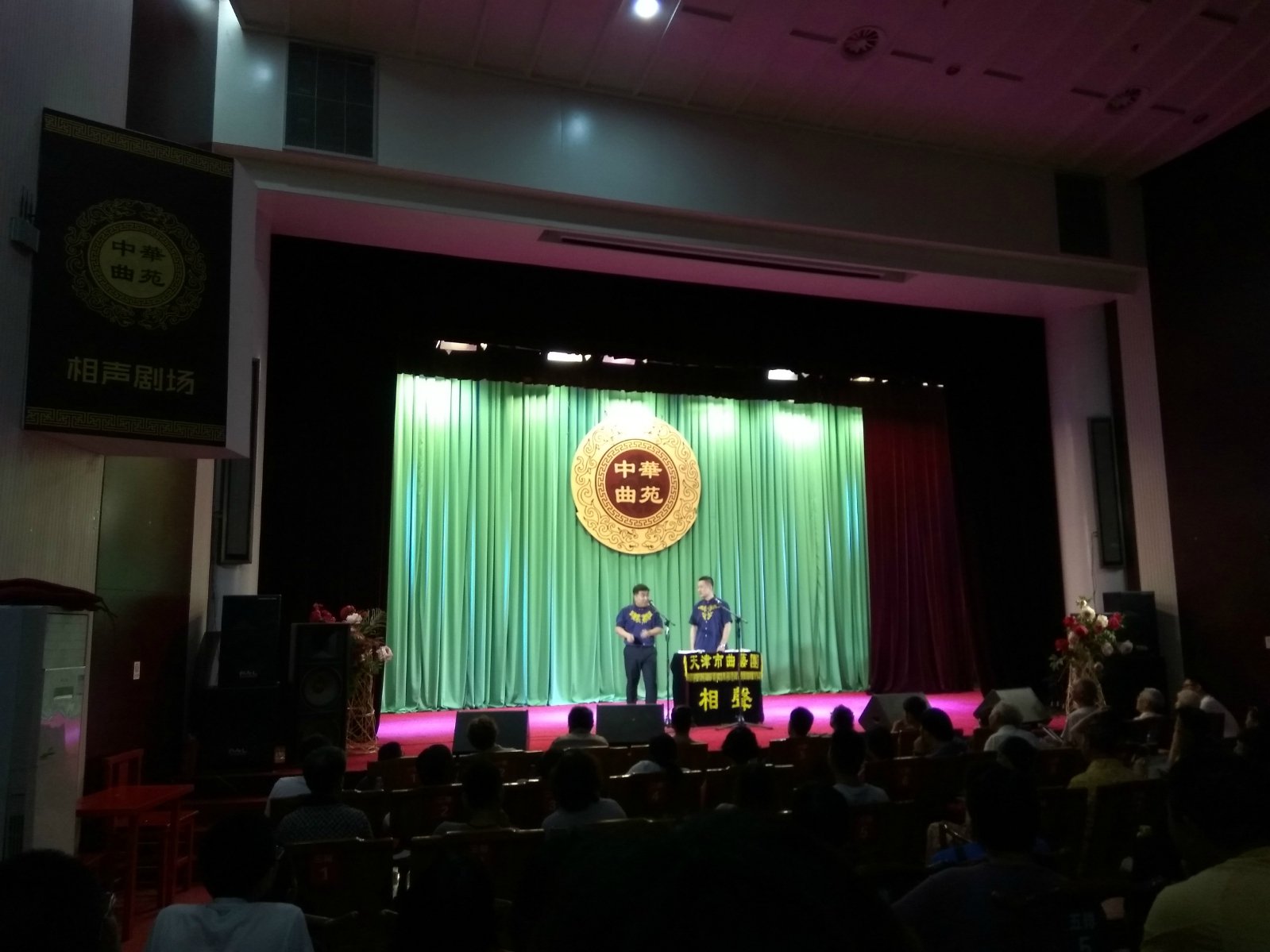 看过天津之眼之后,同伴去了辽宁路小吃街。我和老公没去,在酒店里睡足了午觉,晚上去听相声,这也是我到天津最想做的一件事。在大众点评里买了中华相声会馆的团购票,49.9一位,到了相声会馆之后才知道,原价也不过是50元。表演7点开场,10点结束,七八组相声演员轮番上场,演员们都很卖力,每段表演结束之后都会有一个小的返场。据说天津市政府有惠民票,不到两百块钱可以听一年相声。观众有老有少,有父母带孩子来的,也有老两口一起的,也难怪天津曲艺的群众基础这么好。