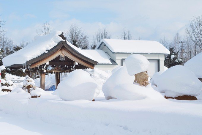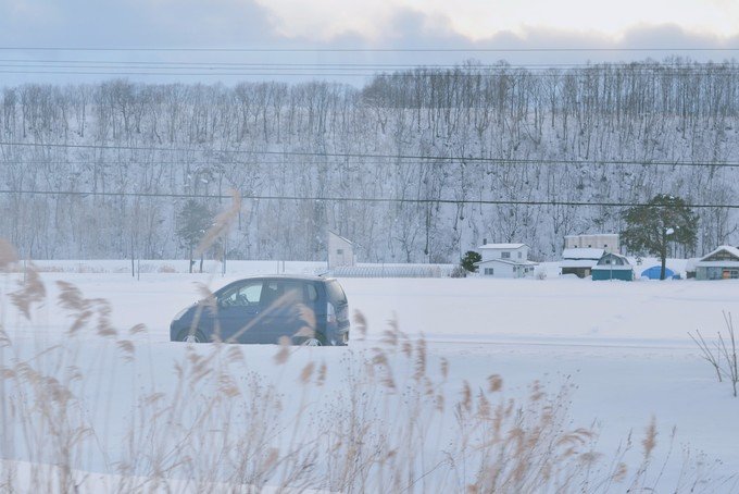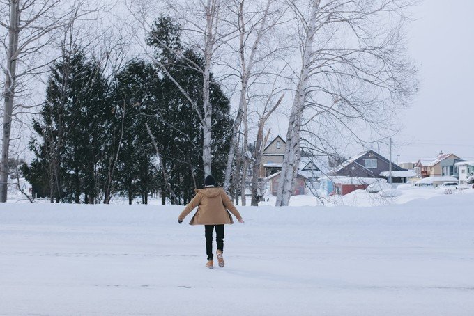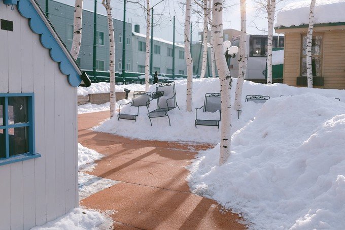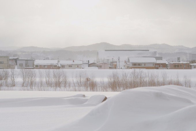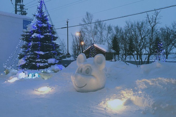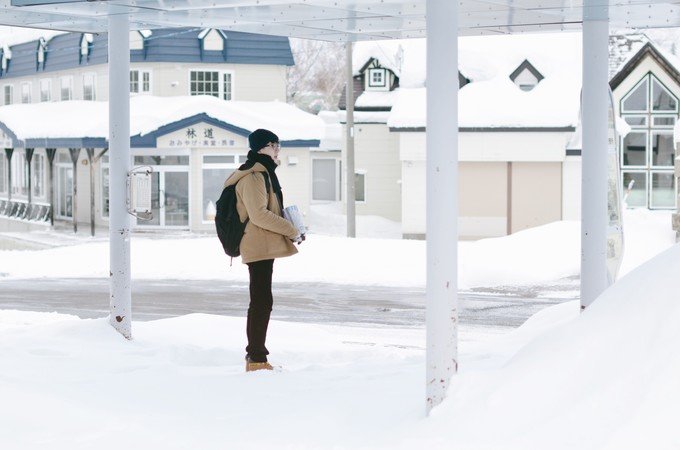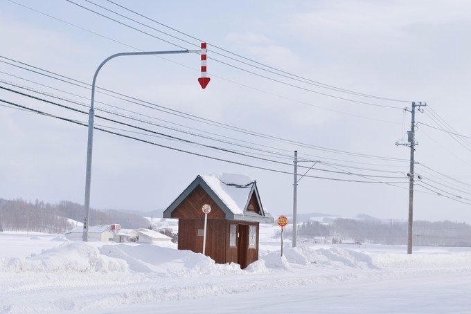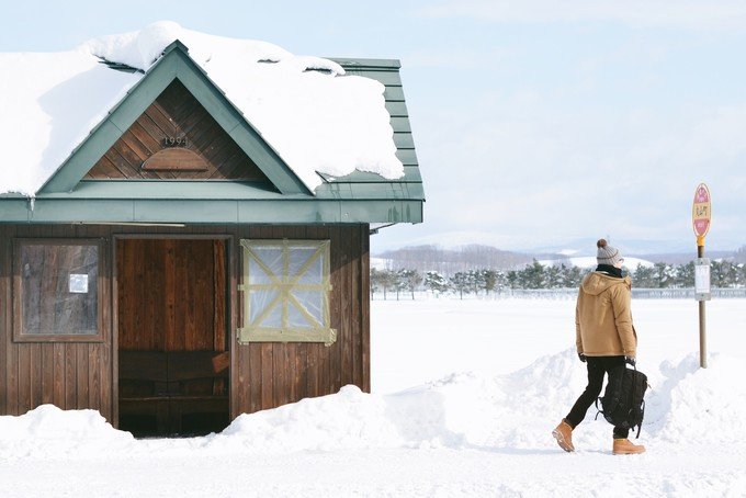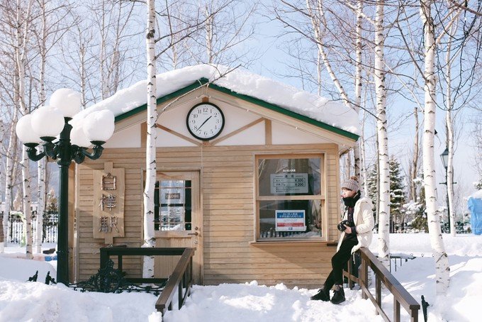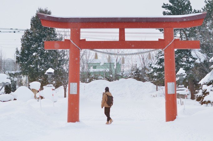 这里就像一个无人的极寒村,我一下车就冷到无法拍照。可能因为那段时间是北海道最冷的时候再加上淡季,虽然很美但是真的好冷。从白金温泉返程的时候我们在中途下车了,是我在路上看到很喜欢的一个站,叫「丸山町」,一下车就是一大片很干净的雪地,往前走就是美瑛神社。