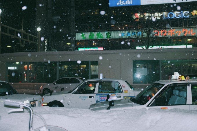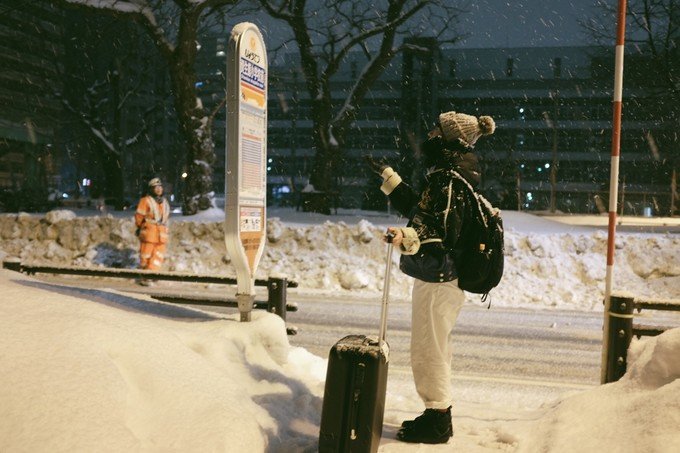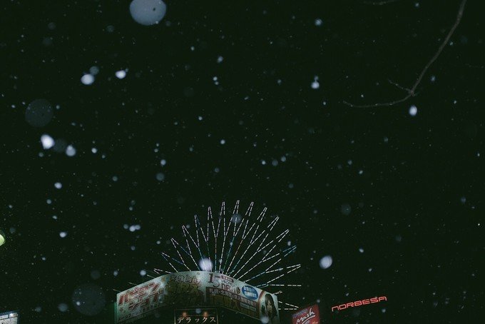 这次行程其中两晚我定的一家民宿在すすきの駅附近,出地铁之后要经过五个红绿灯路口才到。那天晚上刚好下大雪,我和煜弟一人拉着一个行李箱走了很久很久。一路都是飘雪,途中还看到了摩天轮,特別難忘