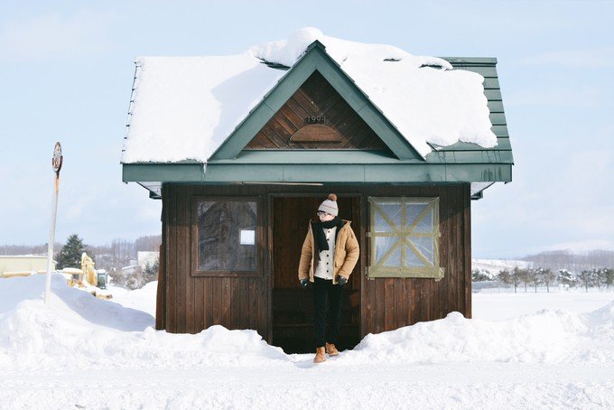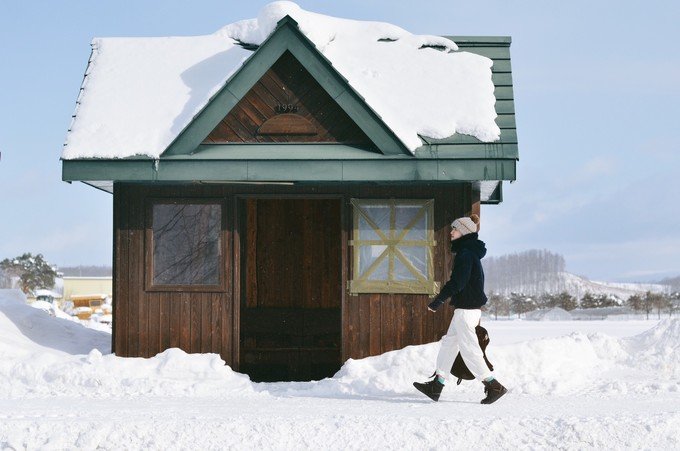 这里的小房子真的好美,我一路拍房子停不下来,我夏天一定要自己偷偷来多一次,感觉一天走下来都拍不够,当时我的手已经冻僵了。我们走到四季之丘就没走下去了,因为冬天日落特别早,两点多快三点的时候天已经慢慢黑了,再走下去会很阴冷,我们决定走回去美瑛车站取暖,然后前往札幌。