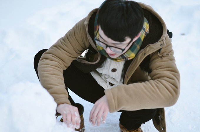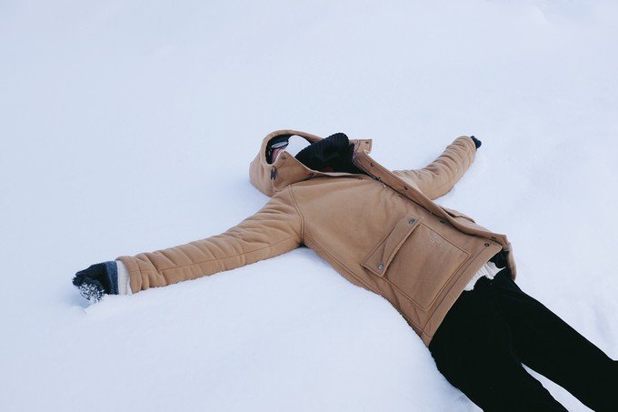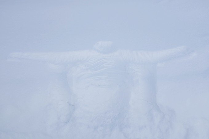 煜走到这里,他说想躺在雪上面感受一下。