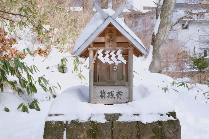 冬天雪地里的美瑛神社真的好美,这里沒有人特別安静。我默默地求了一签,是小吉。直到今天才知道,美瑛神社竟然是日本六大灵气强大的神社。听说来这里祈求恋爱、姻缘的人就能缔结良缘。