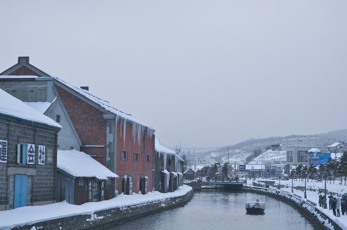 运河很小,所以看起来并没有想象中的那么美,但是小樽给人的感觉特别安静,即使周围很多游客在拍照,很多小孩在玩雪。
