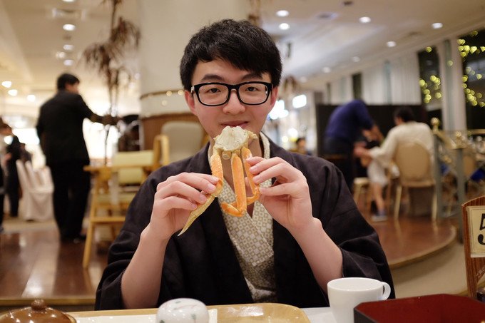 离开地狱谷,我们就返回酒店,附近晚上都很安静,也只能回酒店好好吃一餐然后泡个温泉睡觉。酒店名字叫祝之宿登别格阑酒店。在登别也处在一个比较明显的位置。晚上回酒店有北海道螃蟹自助餐,选了一个靠近窗户的位置边吃螃蟹边看外面雪景。