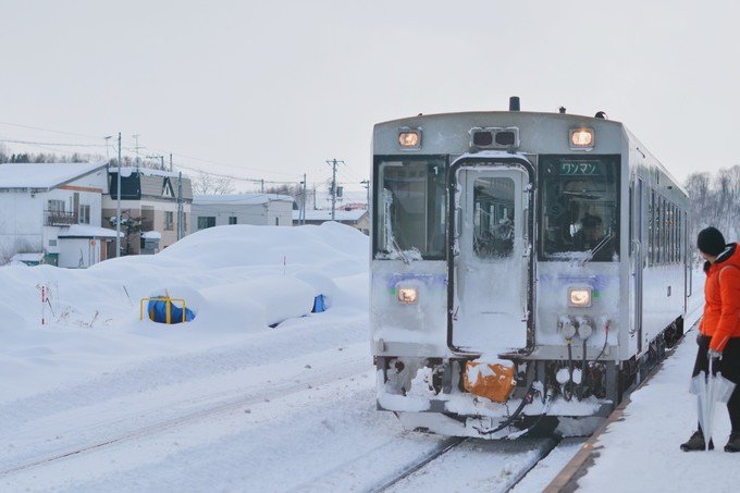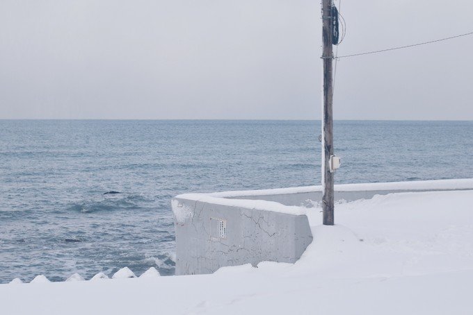 从札幌去往小樽的途中经过很多美丽的小站。印象最深刻的是朝里站,大雪和大海连成一片,美得让人不敢睁开眼睛。