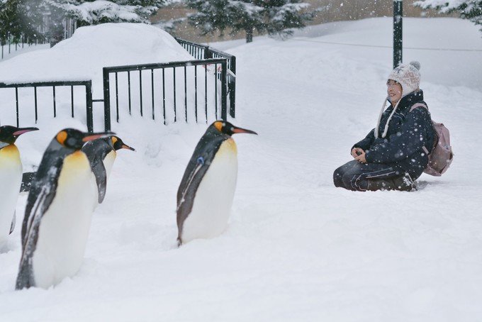 一清早就从札幌出发去旭川,原本电影里的场景,现在看到了。我们没有说话,都是安静看着窗外。一早到达旭川站后 出站就看到很多人在排队乘坐前往【旭山动物园】的巴士 。旭川比小樽和札幌冷很多,最好带口罩能起到防寒的作用。到达旭山动物园后我们在动物园入口吃了一碗拉面热热身体,然后赶去参观11:00开始的”企鹅散步“ 。工作人员会指导你“企鹅散步”怎么走,不用担心动物园太大找不到。企鹅散步每天有两场,11点和14点,一定要看准时间,不要错过企鹅散步这个重头戏。