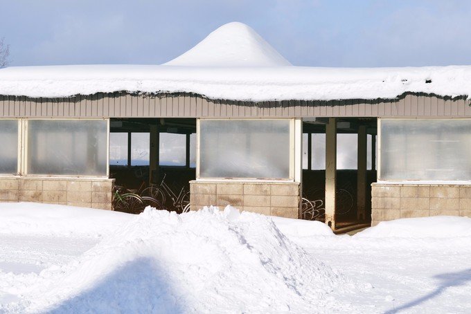 美瑛车站旁边的单车停车场,屋顶的雪堆好像小版富士山⛄️