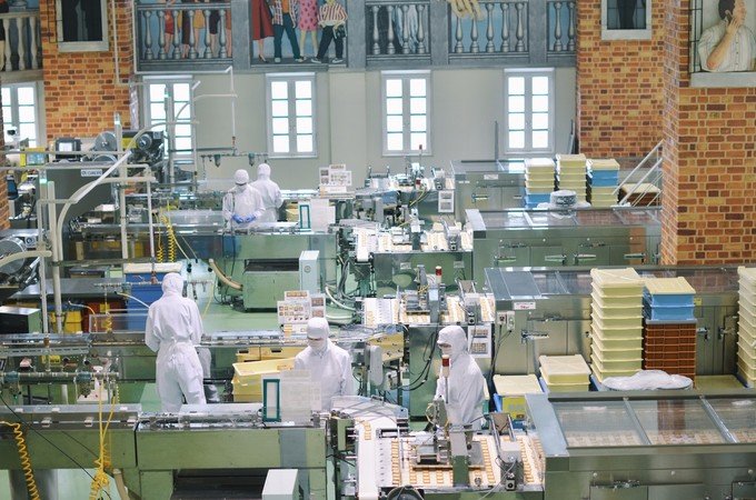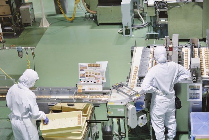 隔着玻璃,可以看到白色恋人饼干的生产车间。