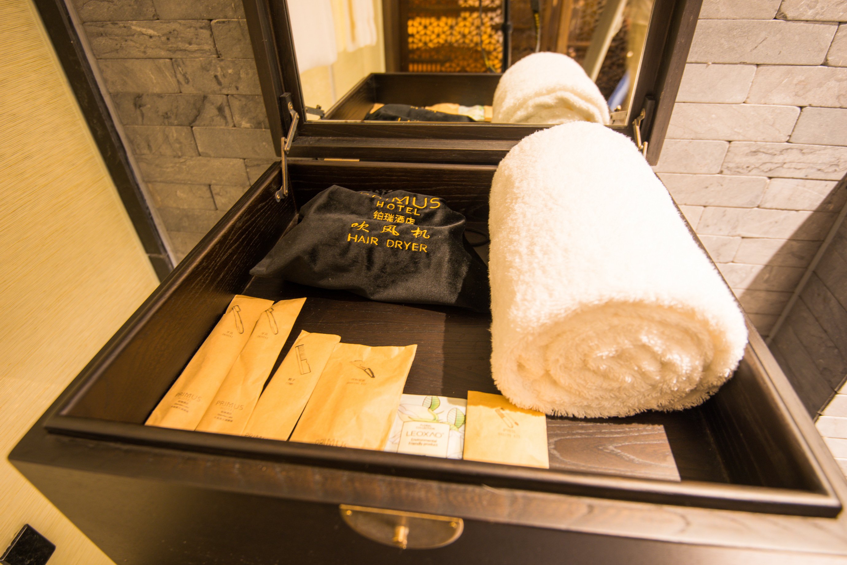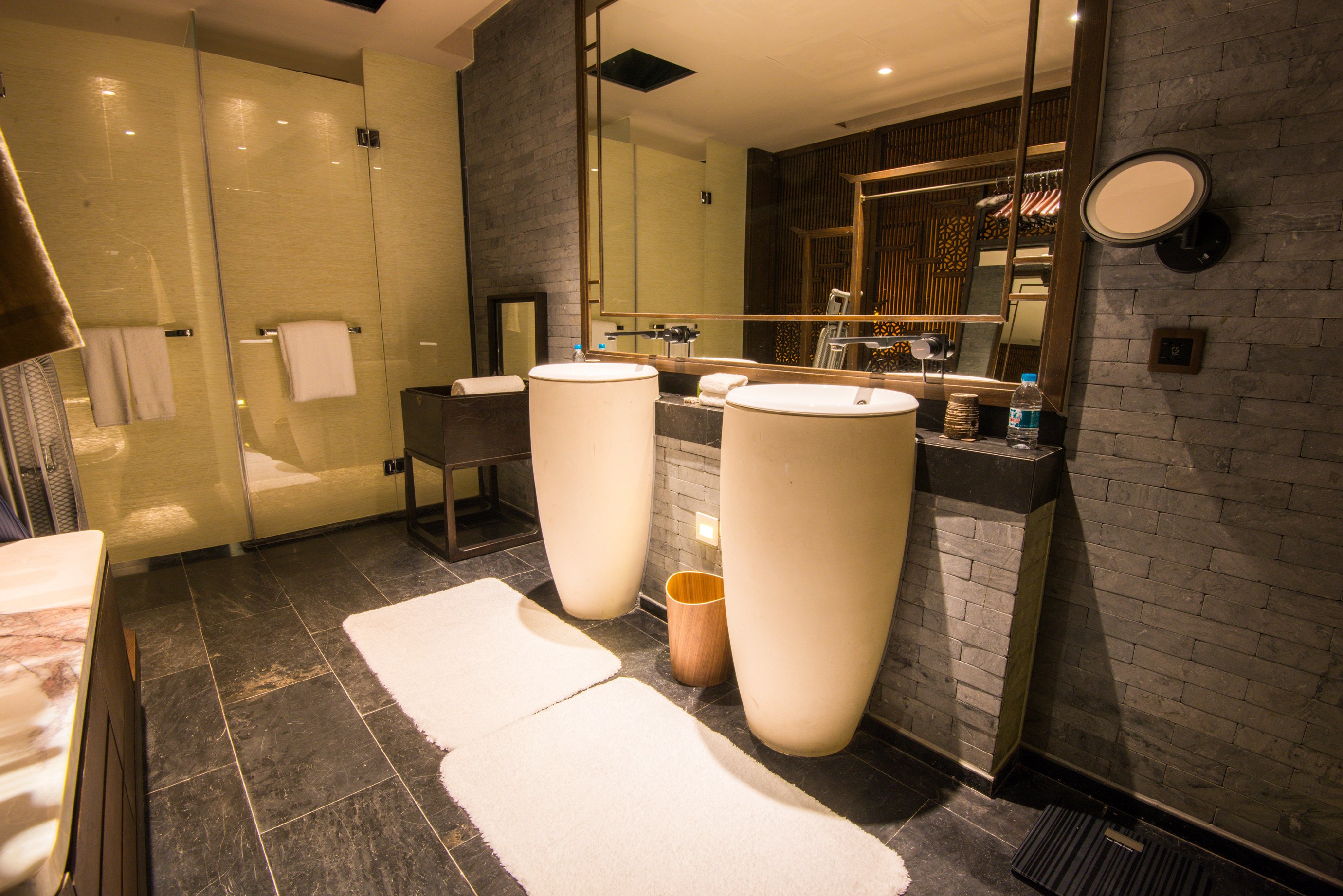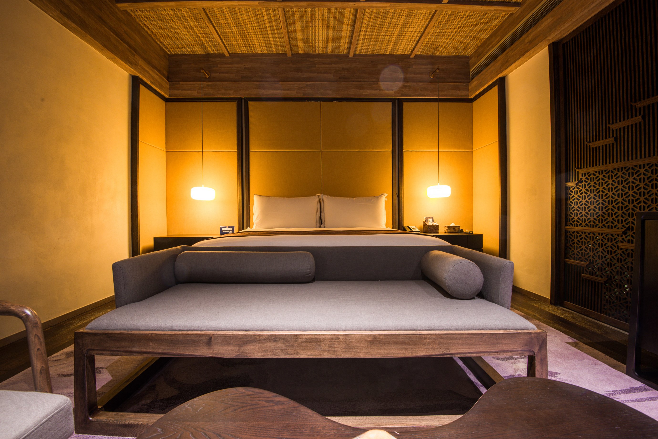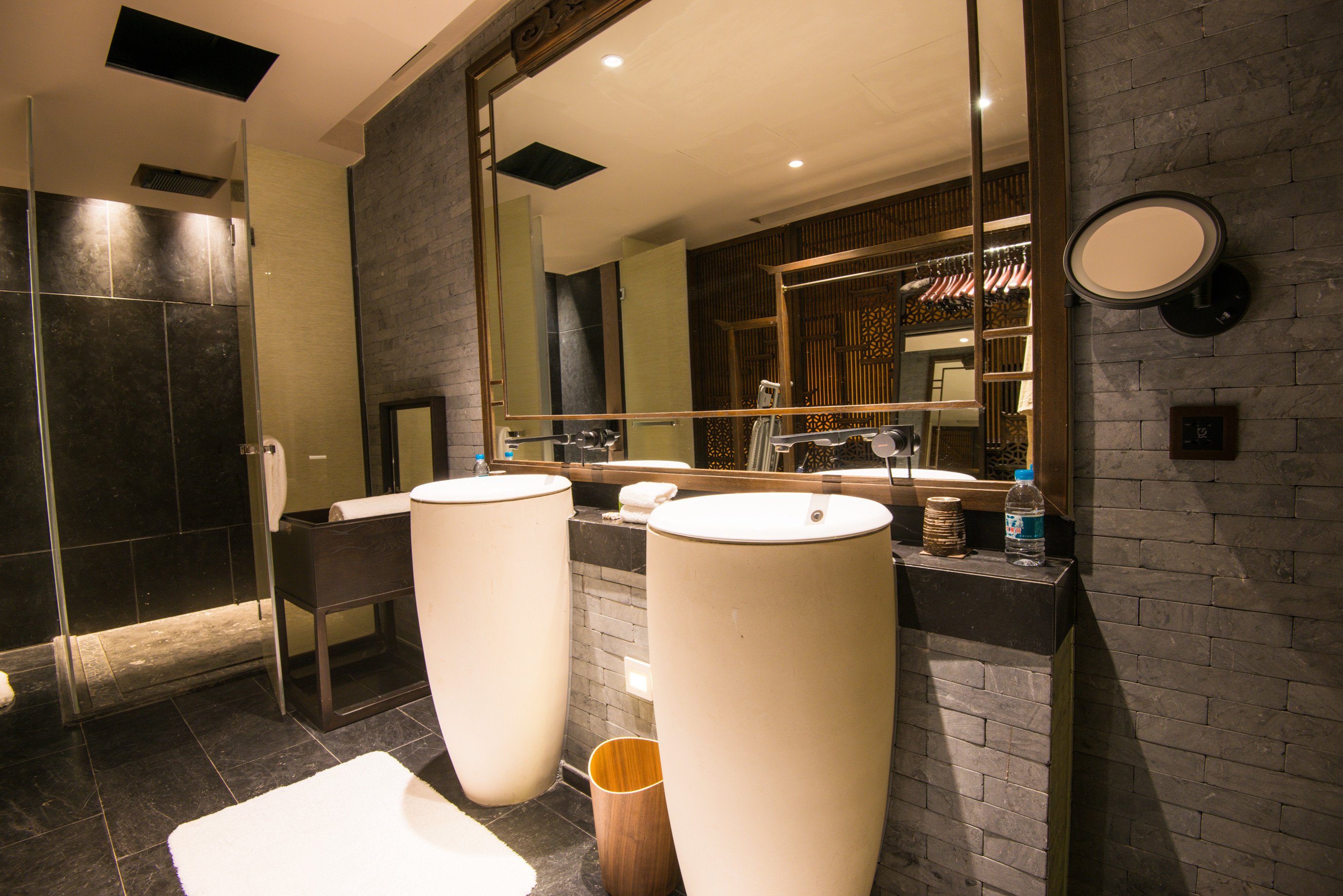 房间的整体面积估摸着有50平左右,而且设计是将现代化都市度假酒店与复古的徽州文化有机结合在一起。