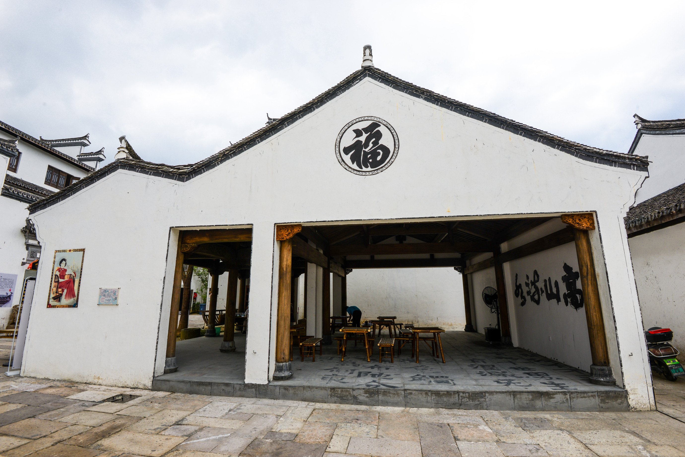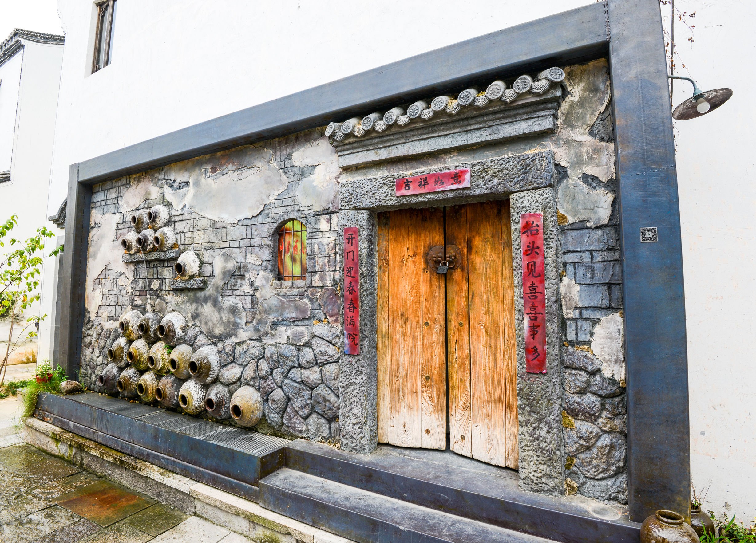 老式的木质大门,推开可见典型的徽派建筑,白墙黑瓦,很有感觉。