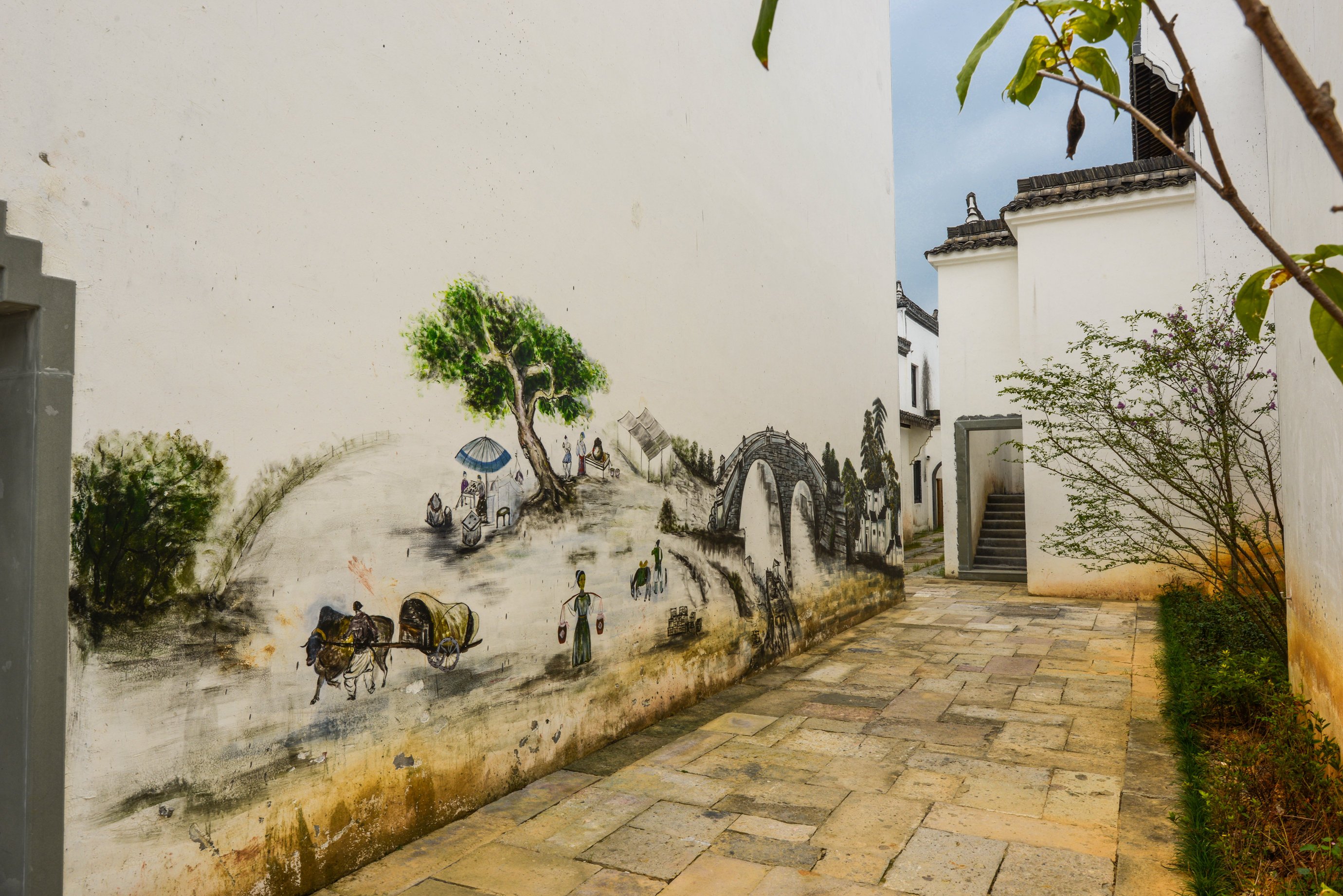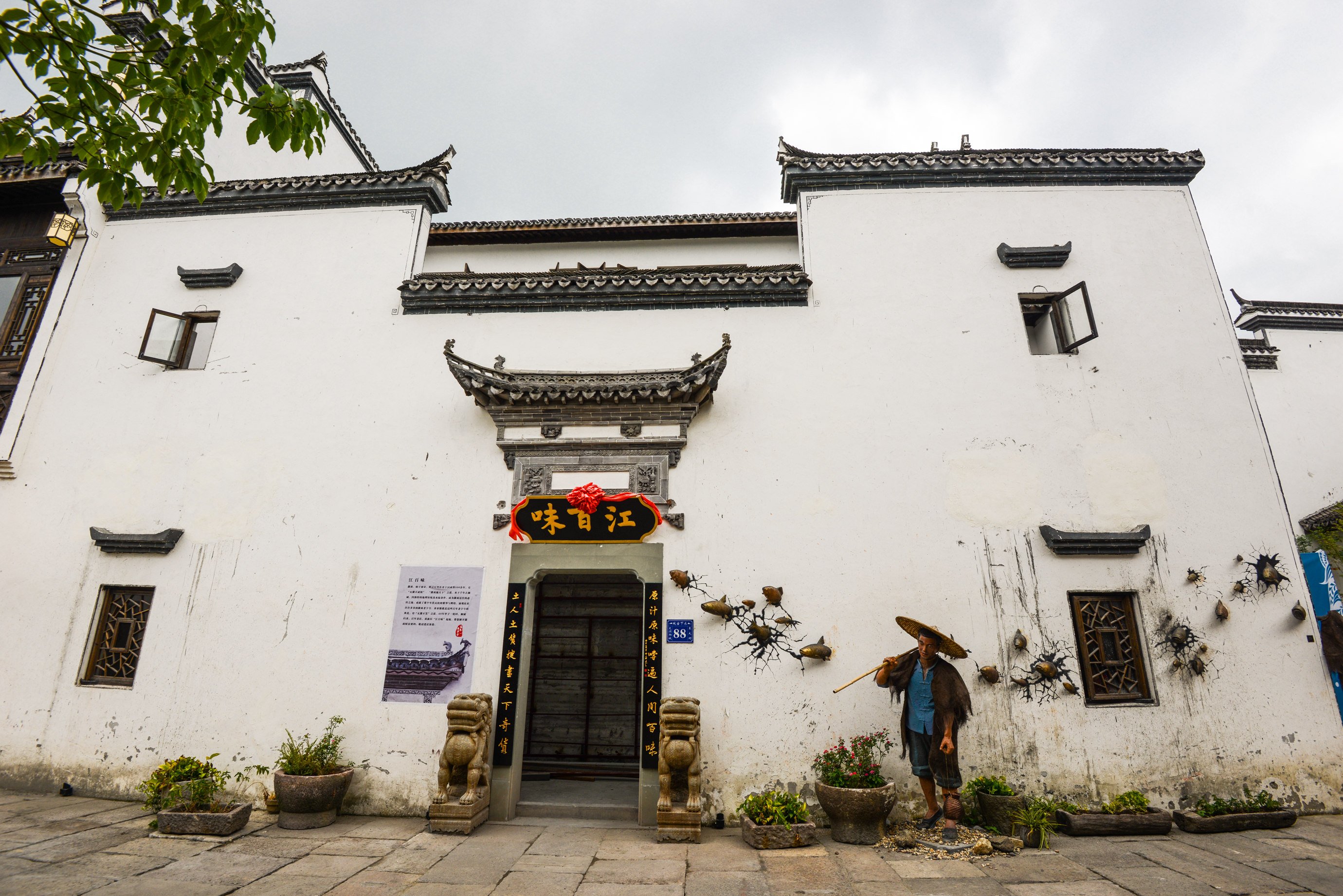 660米的老街,纵横交错,老石板、旧门板,依然是熟悉的徽派建筑、白墙灰瓦;自然与建筑,人与环境,人与建筑,在这里构成了新的和谐,一切都是如此吸引人。