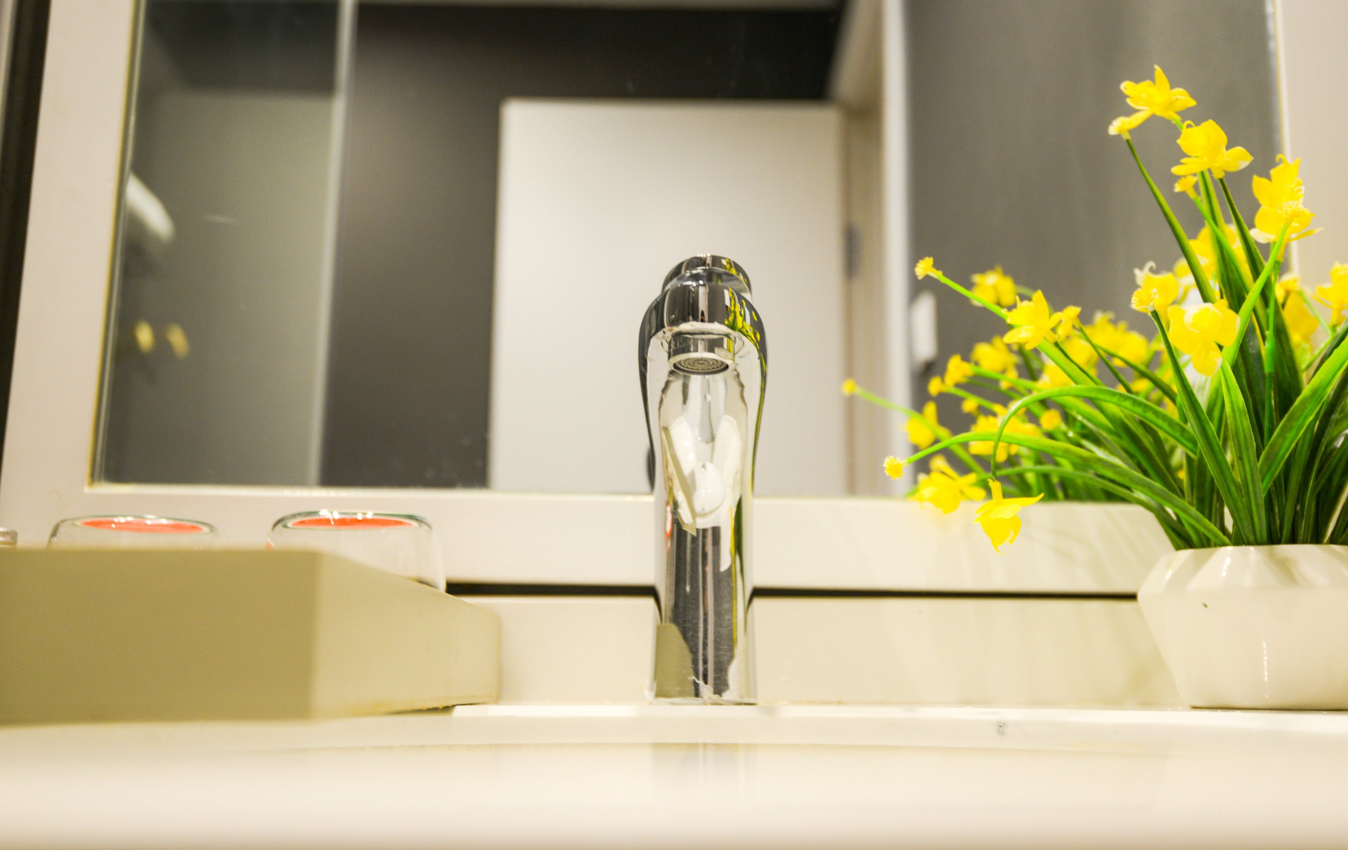 洁白的盥洗台,一层不染,尽显王者风范。