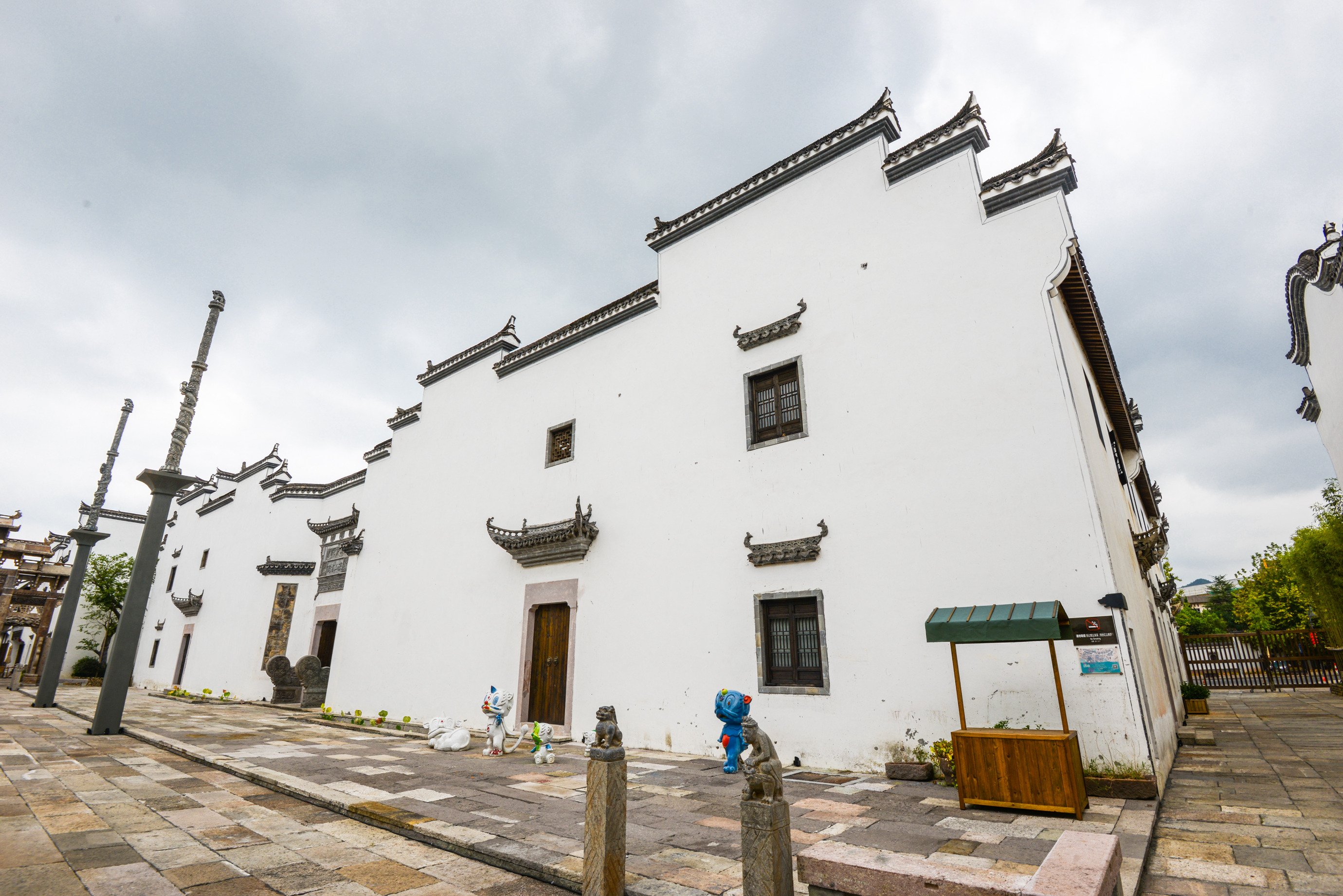 文渊狮城内有这么一家艺术民宿,八组艺宿,八个房东,八种职业,八个故事。民宿的建筑风格为白墙黑瓦的徽派风,和狮城整体很好的融为一体。民宿不像五星酒店,外观看起来豪华大气,但当你进入民宿的那一瞬间,你会被眼前的东西所吸引,整个民宿装饰很有童真,色彩绚丽,到处摆满了玩偶玩具。公共区域还准备了最新最酷的玩具、儿童书籍,这里有全天候的趣味活动,以及供孩子娱乐的玩乐场所,强烈建议亲子前往。