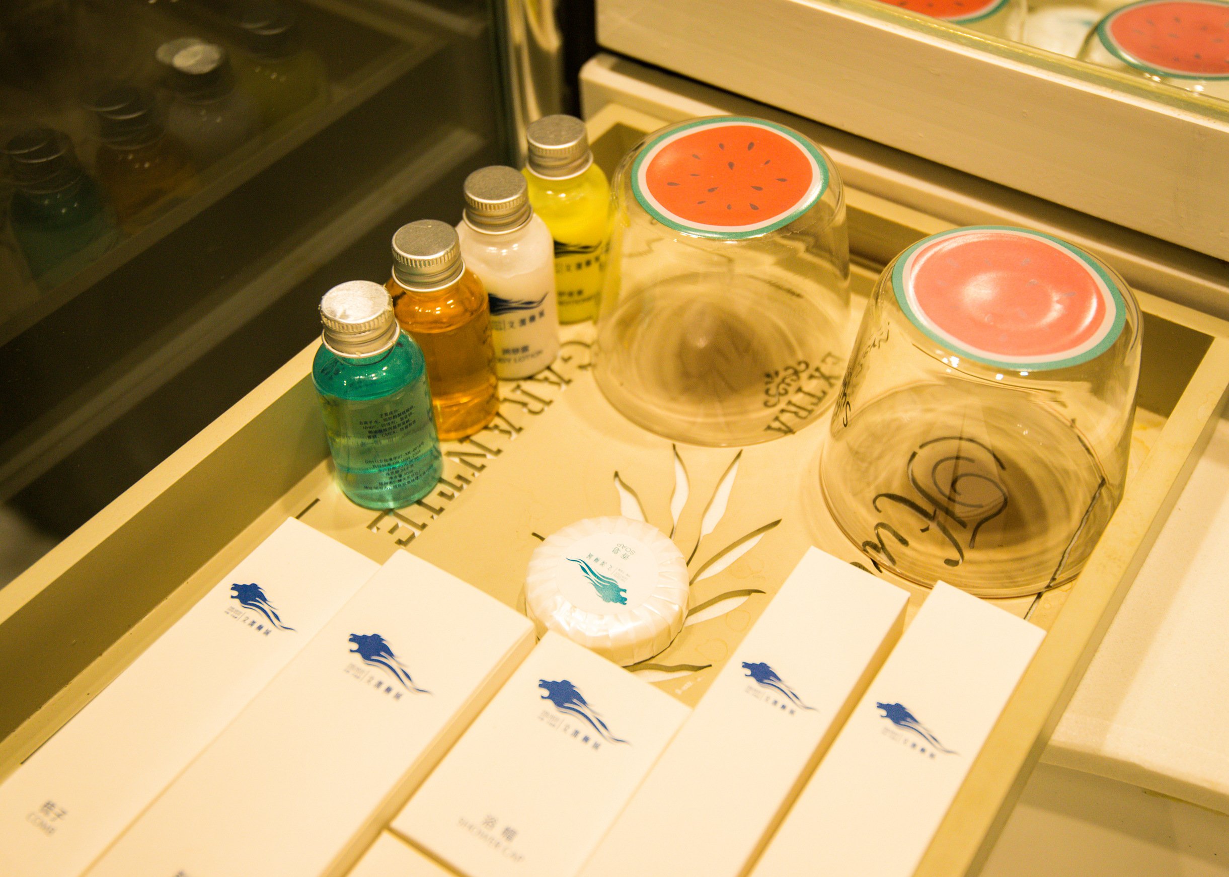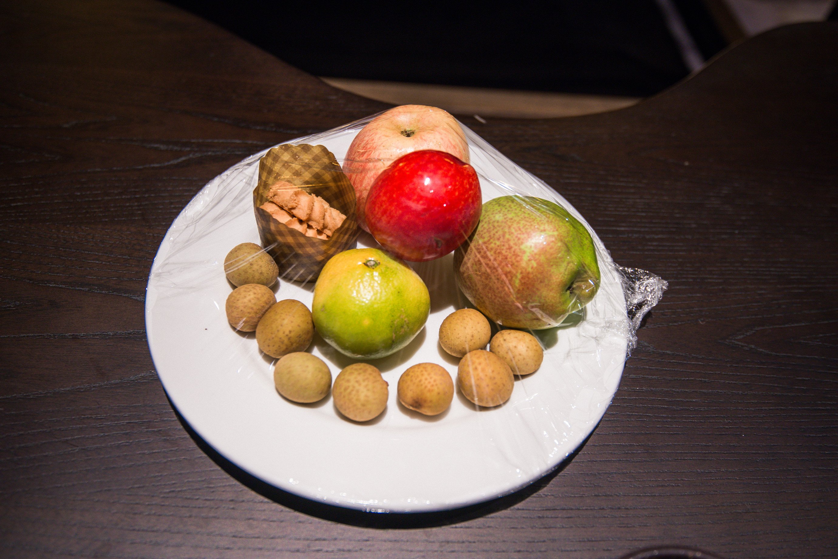 酒店细心准备的水果和饼干