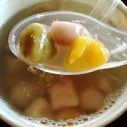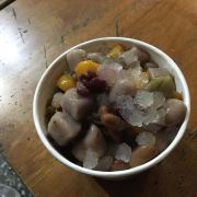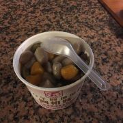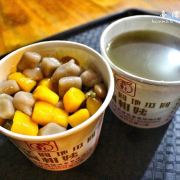 在九份有几家比较出名的芋圆,阿柑姨芋圆就是其中的一家,他就在九份接近山顶的位置。这里有观景座位,晚上可以来这里买一份芋圆,坐在观景的位置看山城的景色,不过晚上这里比较大风。这店铺开店到现在已经有30多年,是九份最老牌的芋圆店。芋圆都是手工现制。有冷热两种选择,冷的是做成刨冰,热的是做成豆汤。芋圆搭配可以选择综合豆,红豆,绿豆,大豆。芋圆有芋圆和地瓜圆,紫色和黄色。要了一碗刨冰的和热的,芋圆有淡淡的香甜,特别的软糯,咬上去很软却不黏牙。热的是甜汤。冷的比热的好吃一些。