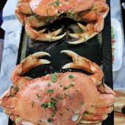 这家应该是渔人码头商圈好评最多的餐厅吧,很多美食推荐app它都是网红热门餐厅之一。 在海边的餐厅肯定是以吃海鲜为主啦,网上说这家店特别火爆,随时都在排队。 也不知道是我们太幸运还是什么,反正我们去的时候还有空位,并且还是窗边位哦。 因为不饿的缘故,所以只是点了一份海鲜拼盘和一份沙拉,吃后感是一般般吧,并没有多特别。 【虾蟹拼盘】 上桌的时候是放在可以加热的铁板炉上的,所以海鲜还是热乎的,旁边配了两种酱汁。 时隔5个月我基本上已经忘了它的味道了,只是觉得还行,并不是多惊艳。 肉好像还比较新鲜,但是价格不算便宜,好在份量还蛮大的。 所以点单的时候请酌情考虑,不要点太多浪费了。 【凯撒沙拉】13.99美元 很大一盘,也不知道是啥时候开始,我对沙拉很有兴趣,而最常点的就是凯撒,因为基本上不太容易踩雷。 这个就是一盘中规中矩的凯撒嘛,我就当自己在摄入维生素了,对身体健康有好处。 【餐前面包】 赠送的,我觉得美国的餐前面包好像都不怎么好吃,口感不太好,白面包也不会香。 恩,服务还可以,比较热情,也没因为我们点得比较少而不高兴。但是呢,我又给服务费呀,所以这些也算是他们的应该做到的吧。