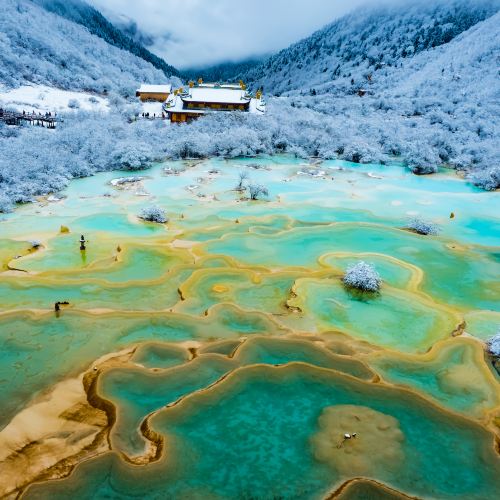 斑斓彩池镶嵌高原的圣地仙境,山水黄龙被誉为人间瑶池
