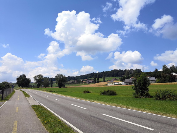 驾车到琉森湖的路上,遇红绿灯,车窗外的景色。还是坐车看美景舒服。