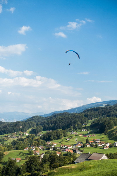 如果在旅途追逐当中,需要“止”一下,思考一下,东瑞士的这座山正好。这里冬季是滑雪胜地,缆车四通八达。夏季环境也不错,假期里也只有一些徒步旅行( hiking)者,滑翔伞从高山上缓缓而下。